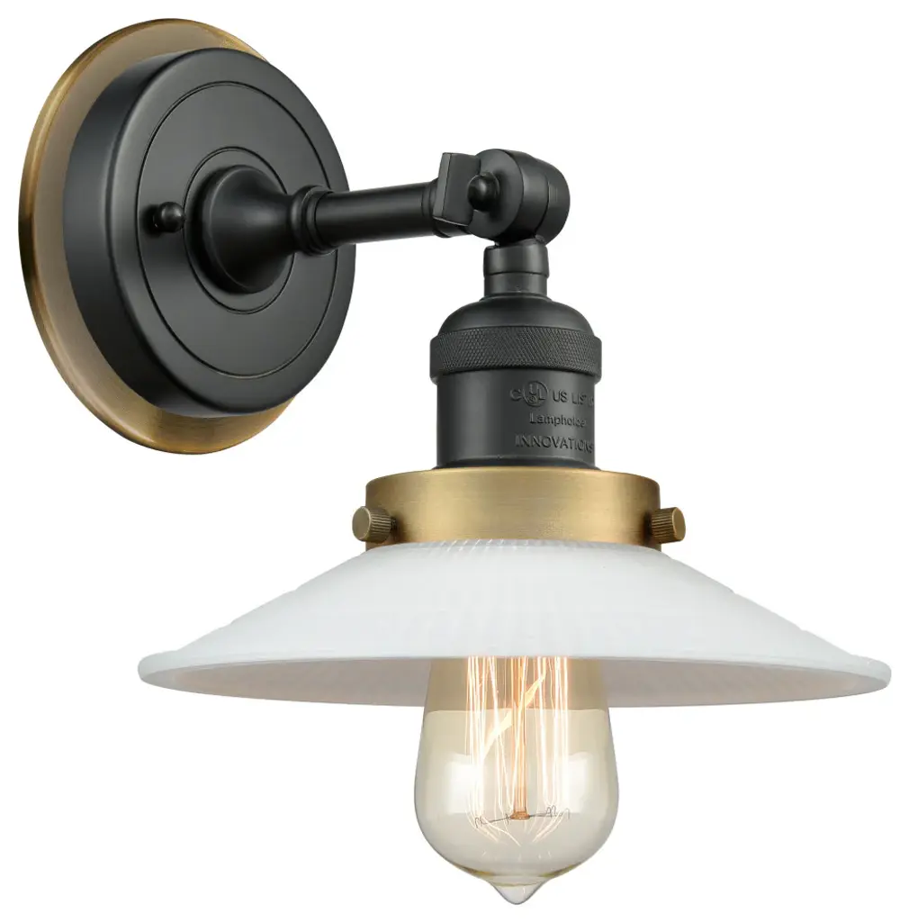 One of our largest and original collections, the Franklin Restoration is made up of a vast selection of heavy metal finishes and a large array of metal and glass shades that bring a touch of industrial into your home.Features:Solid brass 180 degree adjustable swivel with internal teeth that lock in at 5 degree intervals, and engraved cast cup3 way (High-Low-Off) switch included on socketFixture can be hung with bulbs facing up or down as a wall mount, or facing down as a ceiling mountThe interior finish of the shade matches the exterior finish of the shadeDistance from outlet opening to top of fixture 2.25 inchRated for 100 watt maximumUL/CUL and ETL/CETL damp ratedCompatible with incandescent, LED, fluorescent and halogen bulbsNumber of Bulbs: 1Bulb Wattage: 60Bulb Type: IncandescentBulb Included: NoVoltage: 120Finish: Oil Rubbed Bronze Finish Shade Finish: Oil Rubbed Bronze Shade