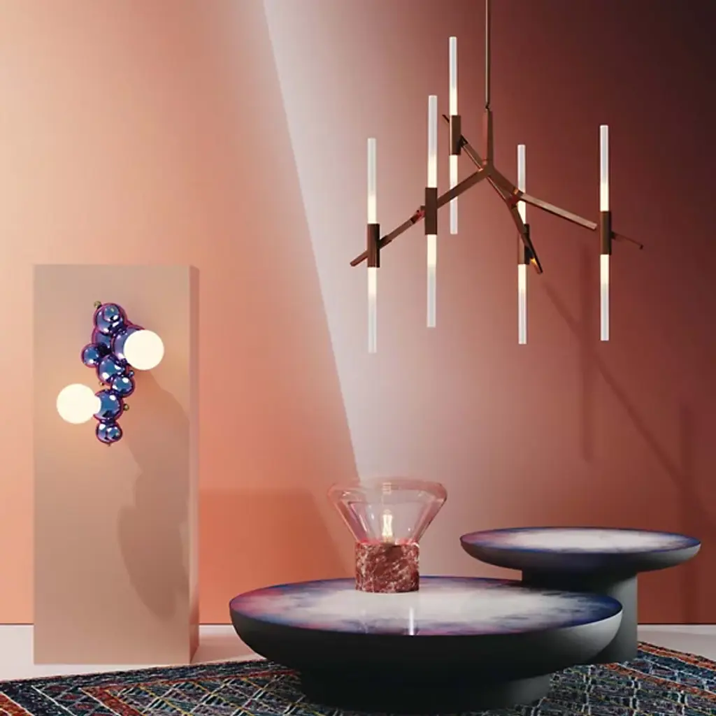 Make a vibrant statement and illuminate your space with the Rainbow Bubbly 02 Wall Sconce from Rosie Li Studio. This handcrafted sconce combines geometric brass frames and bubble-inspired glass shades in an imaginative silhouette. Bold pops of color enliven any wall, while the two LED lights provide bright, energy-saving illumination. Assembled domestically with quality components, this contemporary light fixture brings a touch of whimsy and intrigue to your décor.
