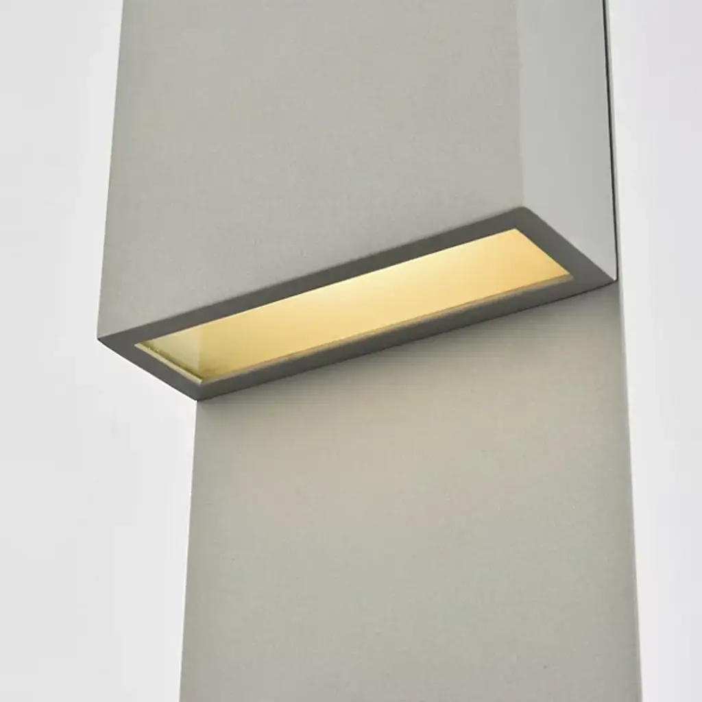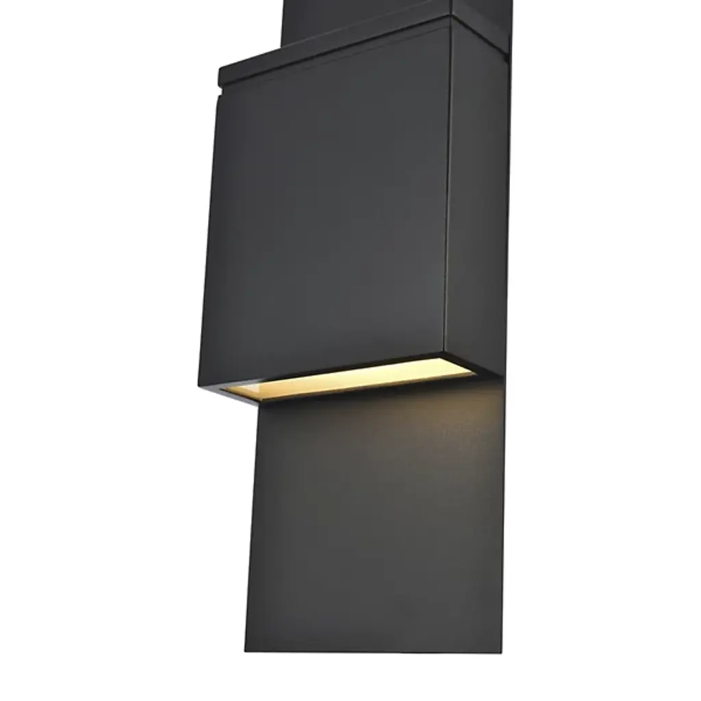 The Raine 4024 Outdoor LED Wall Sconce from Elegant Lighting is an elongated luminary resembling a sleek monolith. Its glass lens acts as a portal, allowing the LED within to paint your exterior with celestial radiance. The aluminum and iron body stands as an unyielding sentinel, ready to brave stormy nights and scorching days. This fixture is an architectural exclamation point, a vertical beacon that screams modernity while whispering tales of starlit adventures.