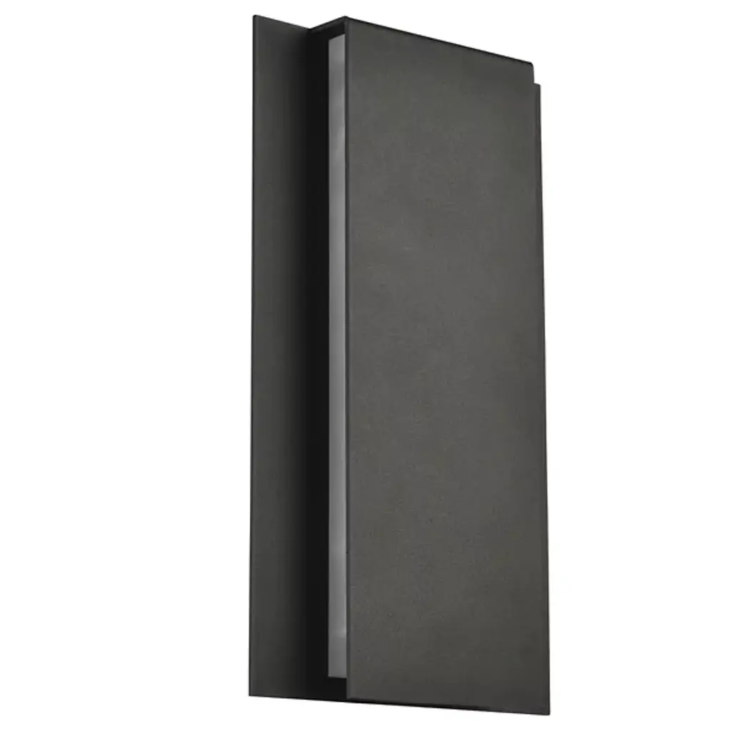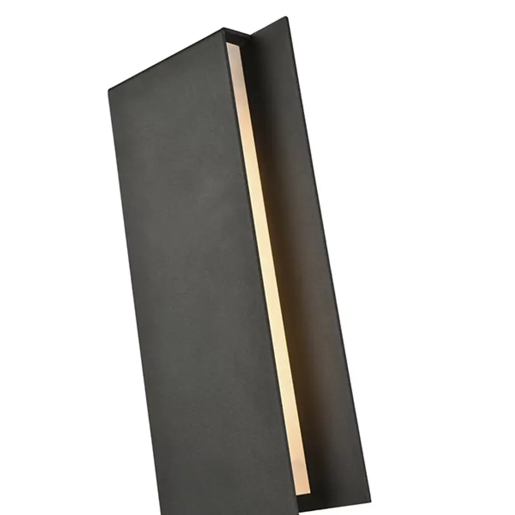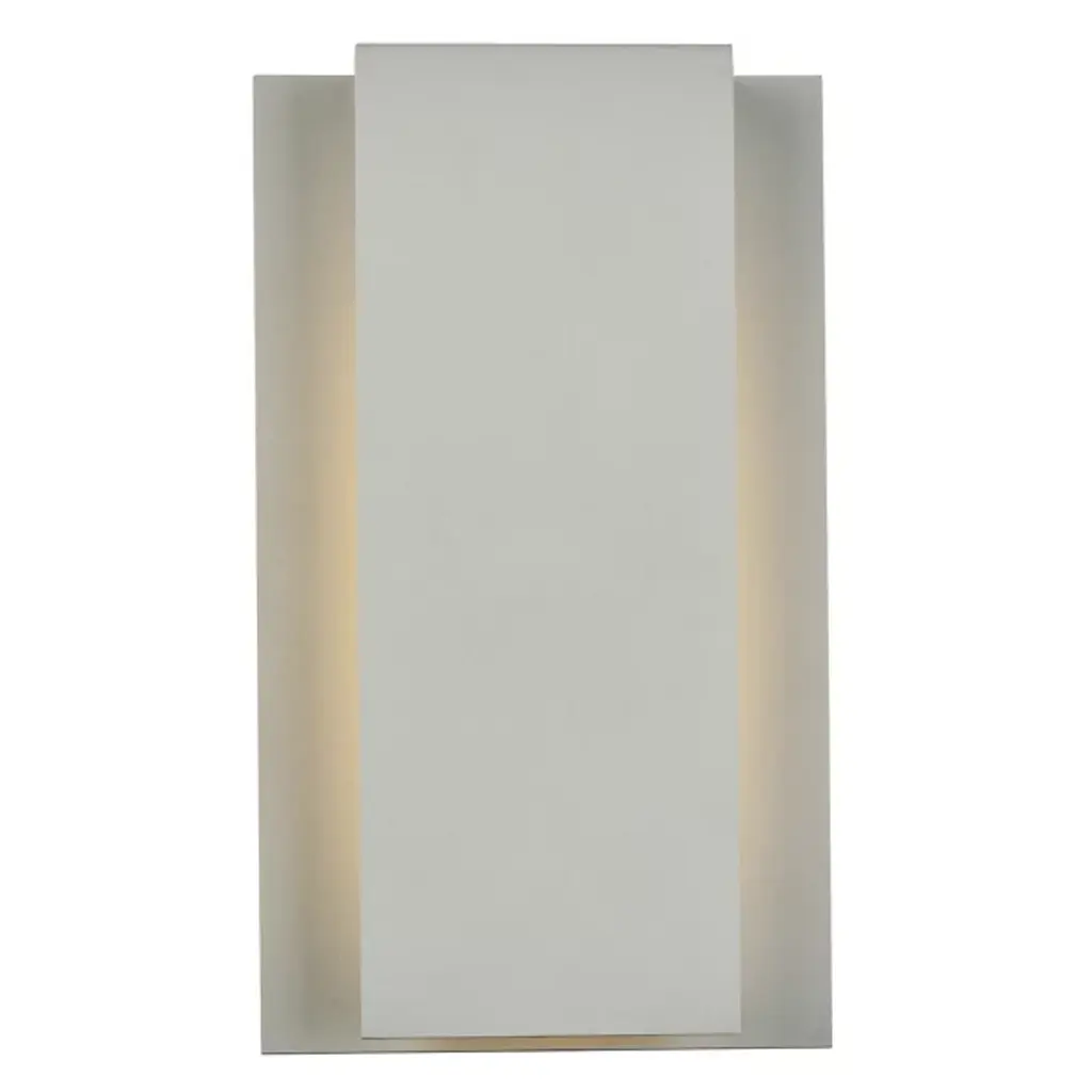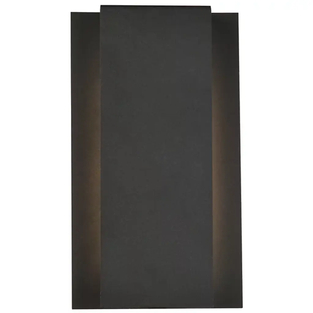 The Raine 4033 Outdoor LED Wall Sconce from Elegant Lighting features a tall, rectangular design with a central panel flanked by two slightly recessed side panels. The entire sconce is finished in a deep, matte finish that projects understated elegance. What sets this fixture apart is its subtle lighting effect. Warm light emanates from behind the side panels, creating a soft, ambient glow that highlights the sconce's architectural form.
