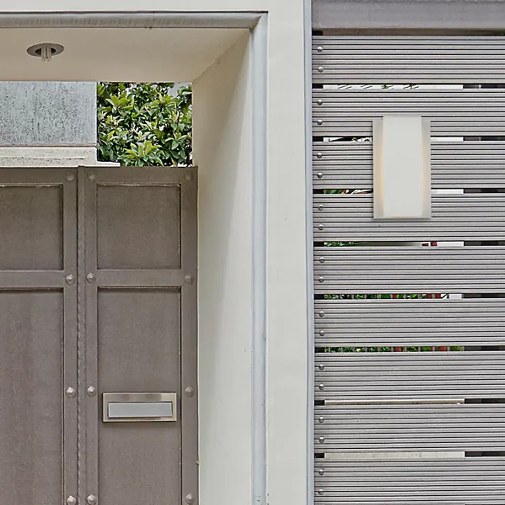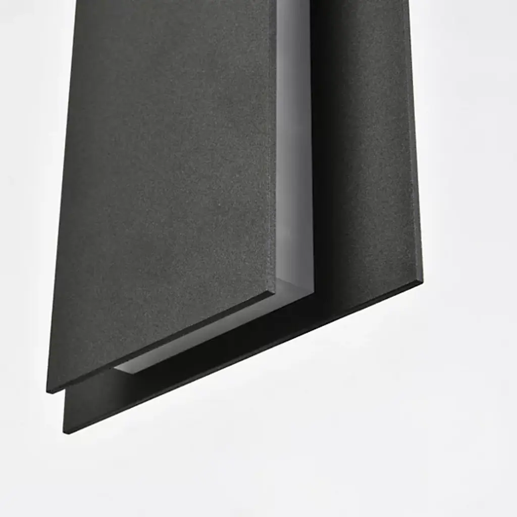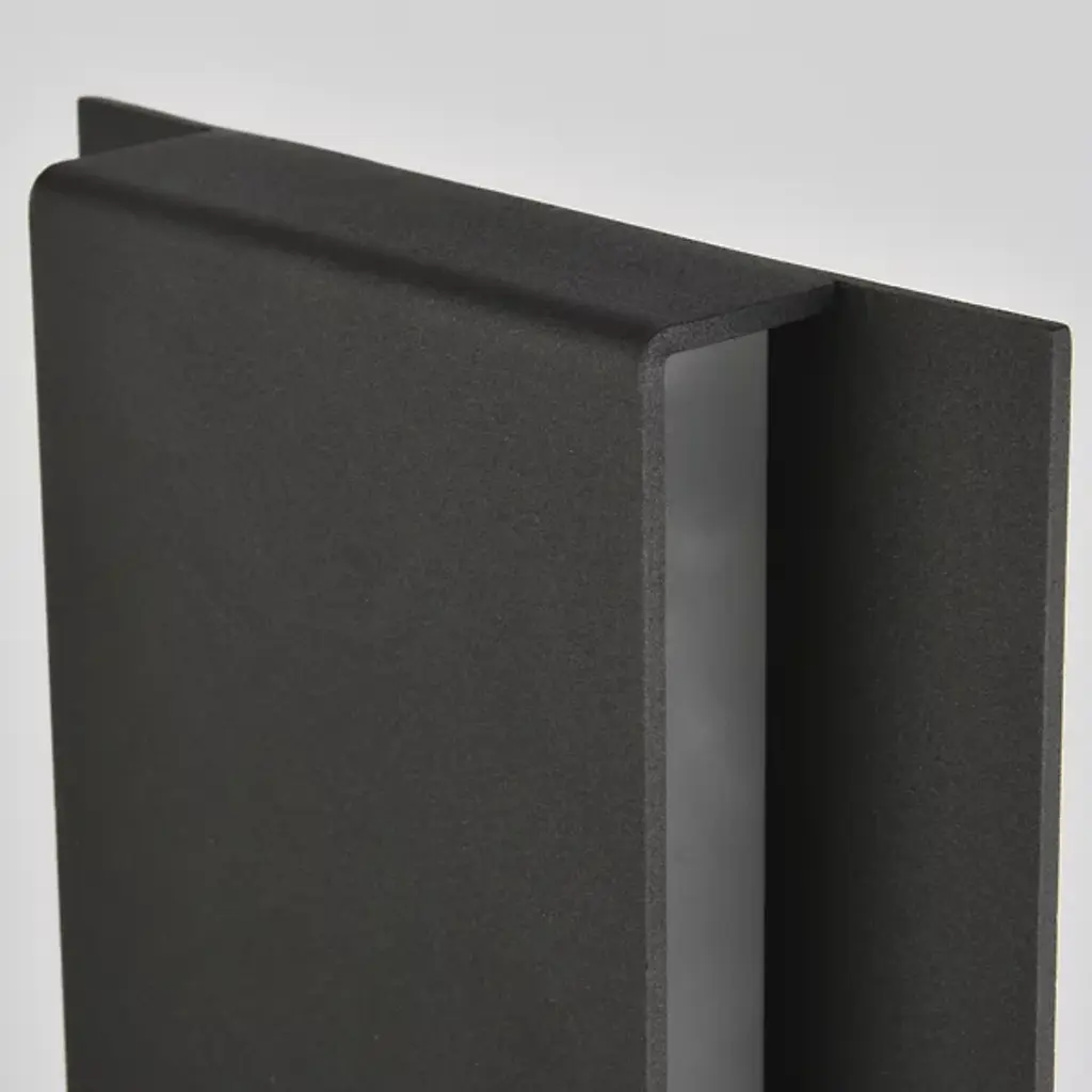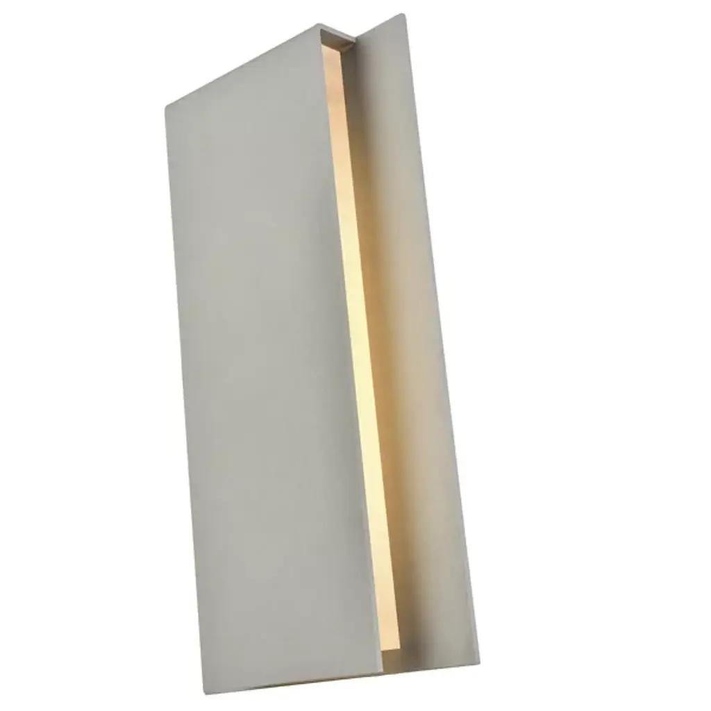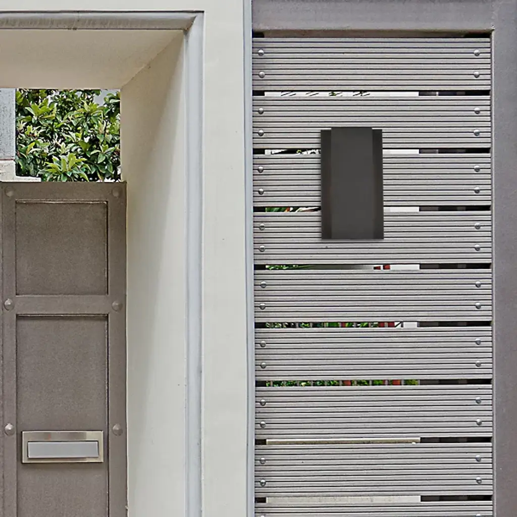 The Raine 4033 Outdoor LED Wall Sconce from Elegant Lighting features a tall, rectangular design with a central panel flanked by two slightly recessed side panels. The entire sconce is finished in a deep, matte finish that projects understated elegance. What sets this fixture apart is its subtle lighting effect. Warm light emanates from behind the side panels, creating a soft, ambient glow that highlights the sconce's architectural form.
