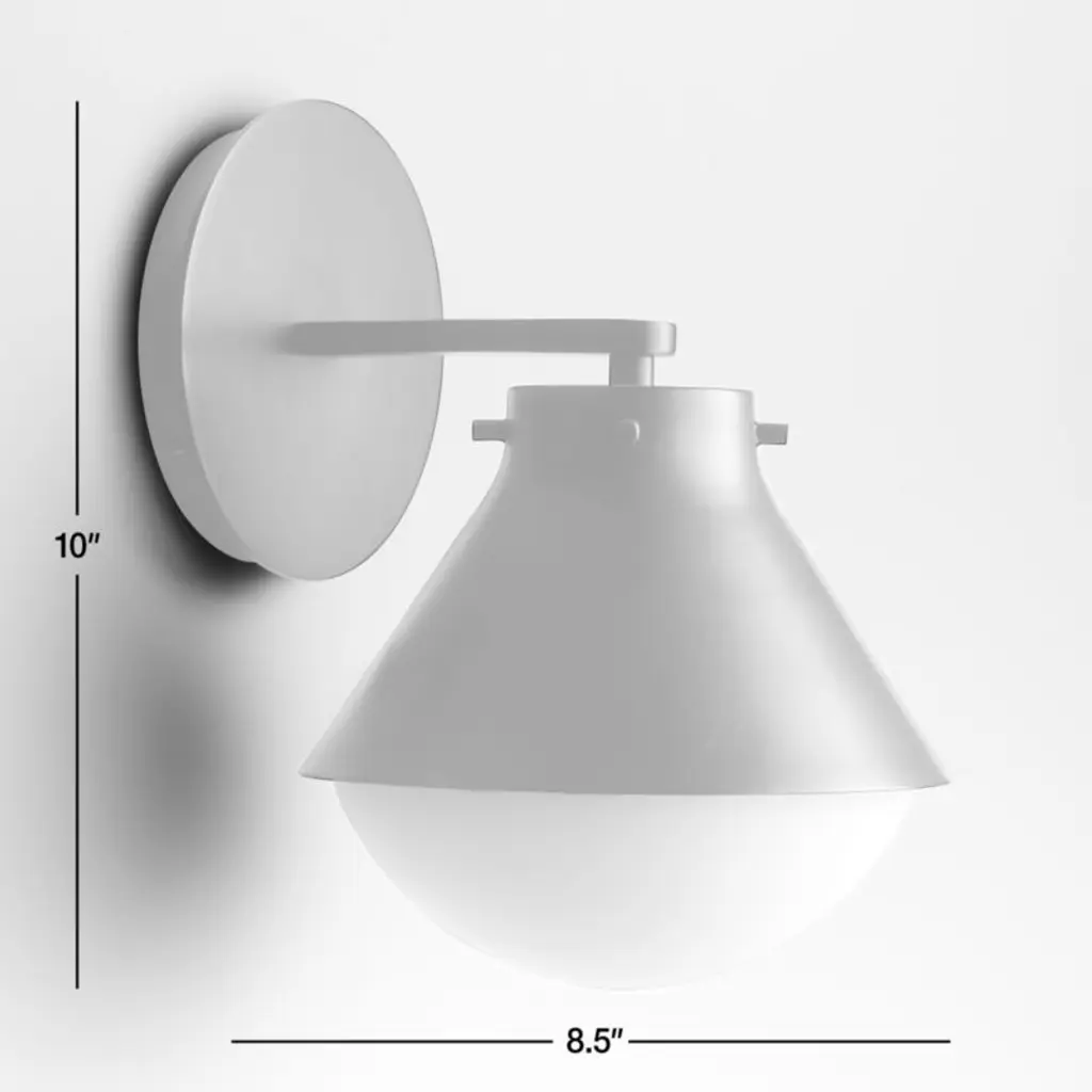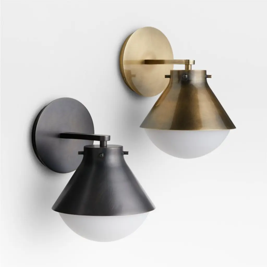 Classic and contemporary, Rainier softens the classic conical sconce by finishing a flared shade with a curve of frosted glass to create a teardrop-like silhouette. The high-contrast pairing of the burnished brass-finished fixture with the bright white milk glass intrigues. We love the wall light offering softly diffused illumination-and a touch of understated glam-flanking a bookcase, doorway or bathroom mirror.