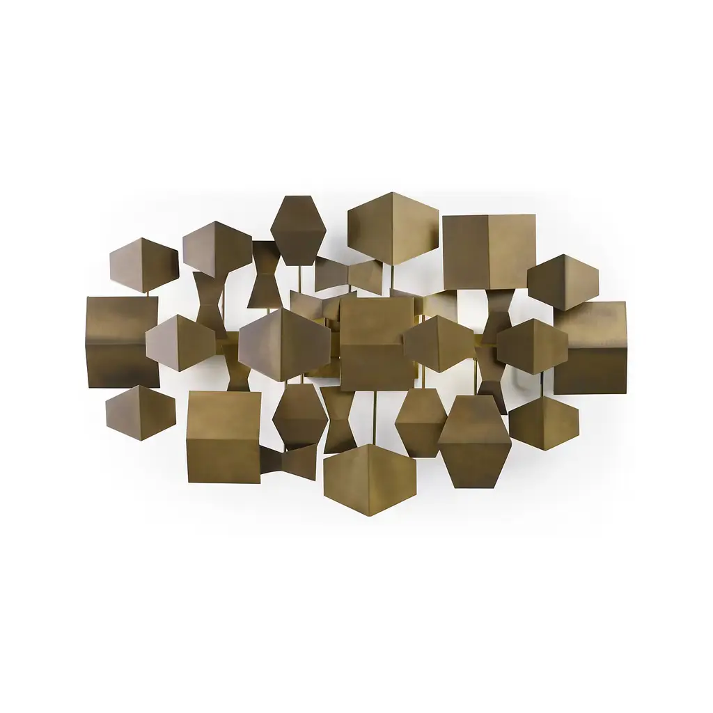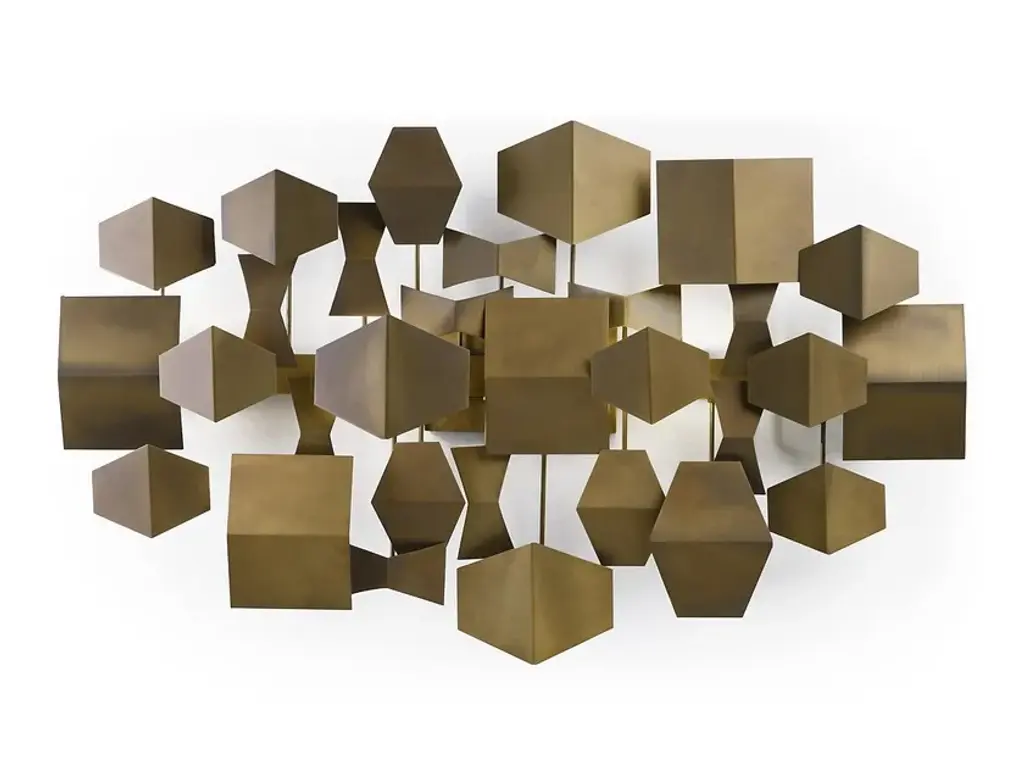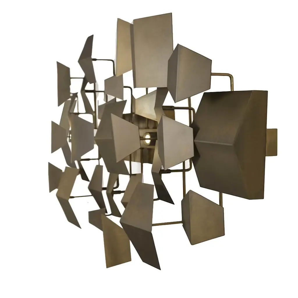 Entirely made of brass, this sconce shields its LED light bulbs with a series of geometric decorations made of plates slightly bent in the middle. Extremely versatile, it can be attached to a wall either horizontally or vertically and its dimensions can be customized to adapt to any room. This striking piece of functional decor is available in different finishes, please ask the concierge for details.