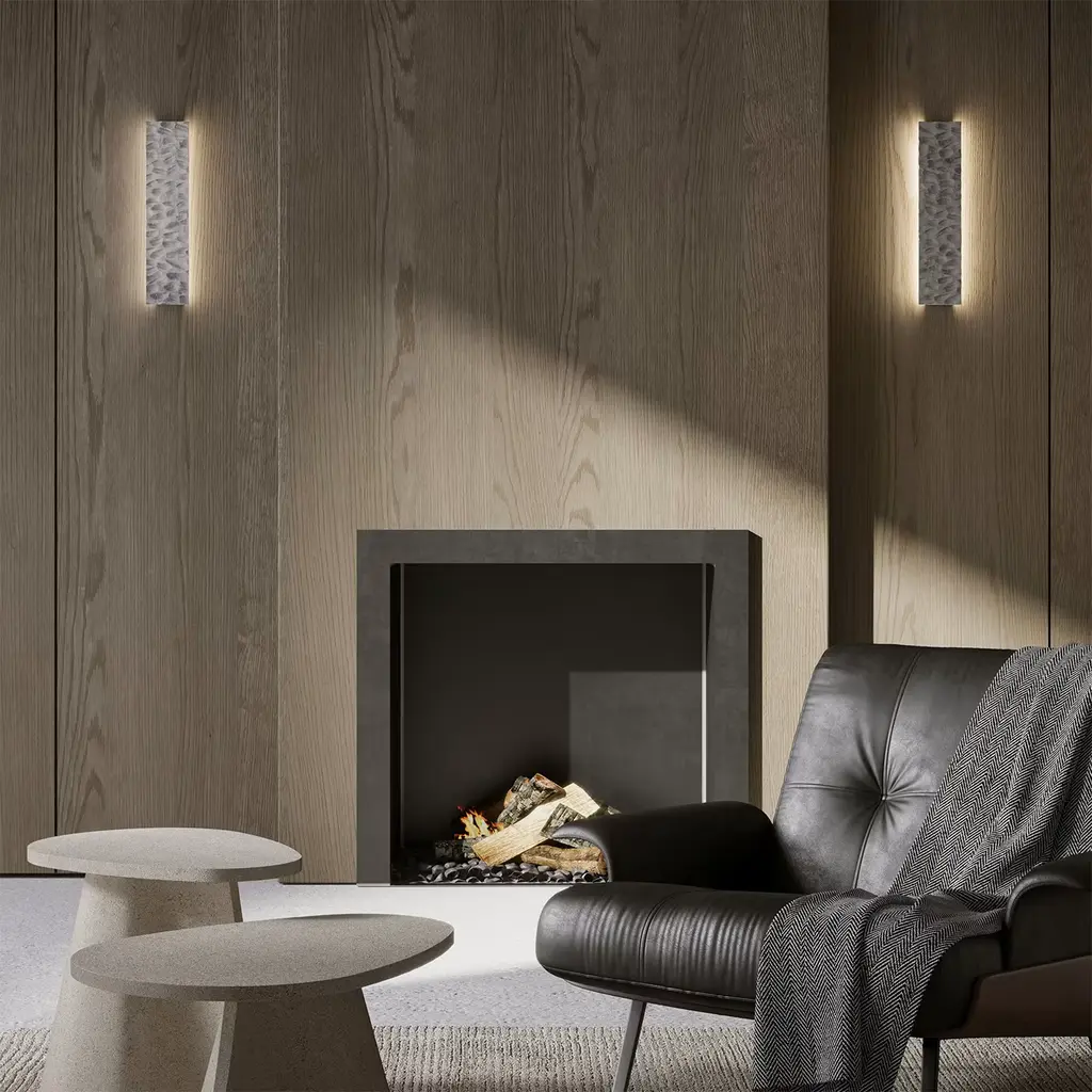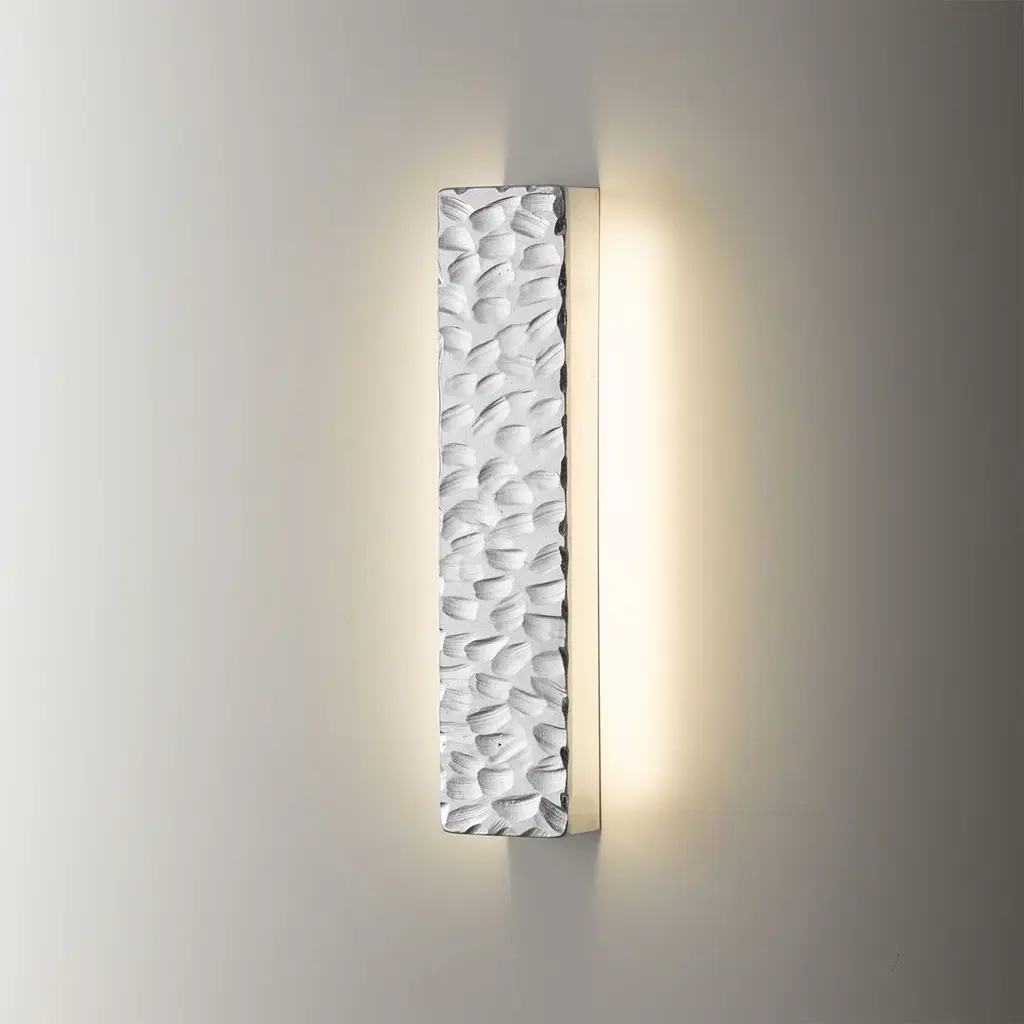 Impeccably crafted, this wall lamp unveils a vertical light fixture adorned with a textured, rugged pattern on its sleek grey metal surface. Its innovative design ingeniously allows light to gracefully escape from the sides, casting a mesmerizing glow and creating a captivating play of shadows on the wall. This Stillux masterpiece embodies the pinnacle of artisanal refinement, seamlessly blending meticulous detail with understated elegance to elevate any space. For US electrified version, a disk of the same finish will be applied behind the lamp base to hide the jbox. Please contact the Concierge for more information.