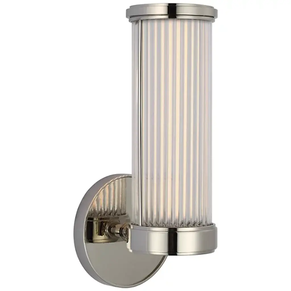 Elegant lighting done simply and with great attention to detail. The Ranier Linear LED Bath Bar from Visual Comfort Signature, formerly known as Visual Comfort, enhances the refined modern space as a cylinder of sumptuous light. The bath bar sports a slim, low-profile backplate for vertical or horizontal mounting in the tightest spaces. A pair of metal rings cap off the piece with a handsome reflective pop. Clear glass rods stream in between the rings to create a diffuser for the light with linear accents. An LED array follows the rods and generates a uniform pass of clean, softened illumination.