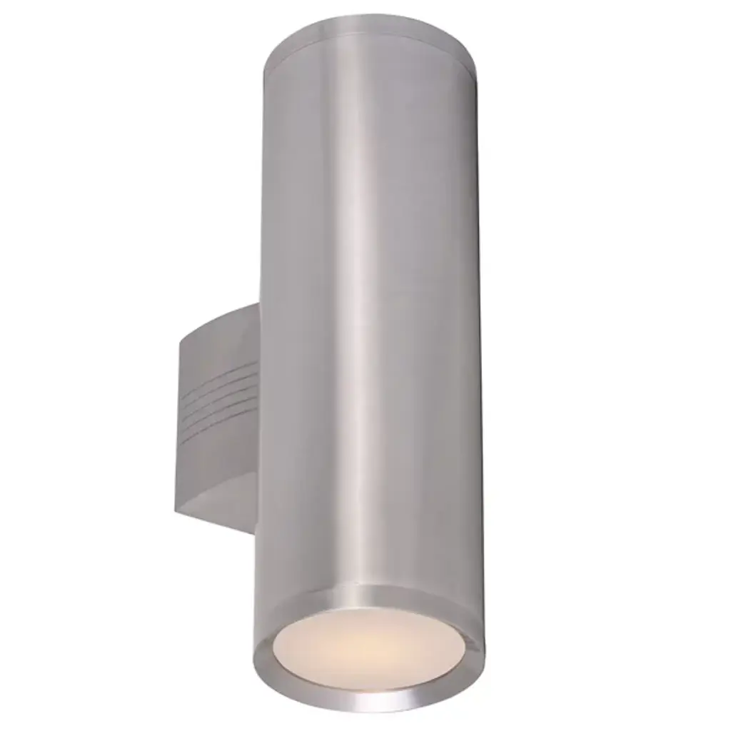 Add a sense of smooth sophistication to the outdoor areas of a dwelling or business with the Raul 2-Light Outdoor Wall Light from Huxe. Designed in 2014 and fashioned from clean-surfaced aluminum, the fixture tucks a damp-rated lamp into each vertical end of a cylinder suspended centrally from a subdued wall mount. Striking in its simplicity, the fixture combines pure durability with stylish functionality, offering spots of direct light in addition to an ambient, indirect glow that pushes the night further back