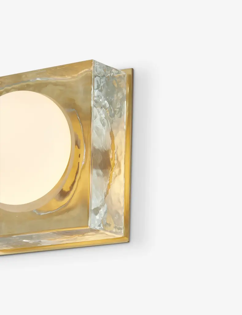 Statement lighting can come in any size. This small wall sconce is an absolute stunner with its opal globe set in a thick cast glass cube and fitted with a glossy backplate. Styled alone or in multiples, the Ravi square sconce is a glam addition to the room.