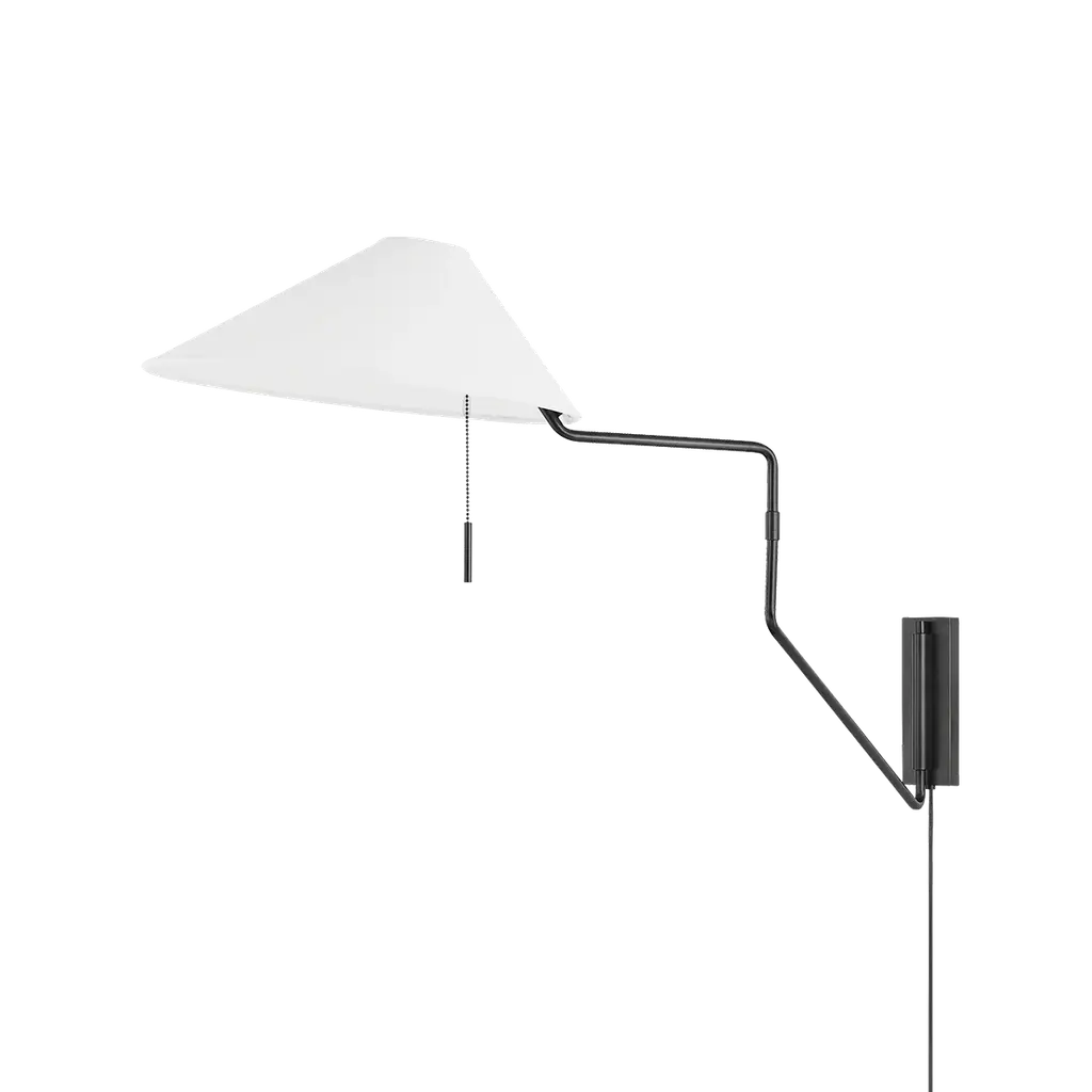 Ray Short Wall Lamps feature soft shades and delicate arms that rotate on an axis for functional, elegant lighting. This collection has a wide range of applications, from a bedside wall lamp to a workspace or study, to a hospitality environment. The brightness on Ray Wall Lamps can be controlled with the switch attached to the fixture.