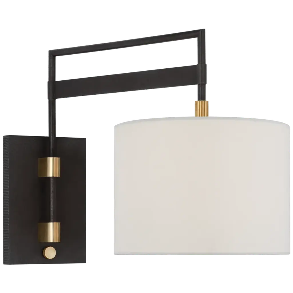 Ray Booth For Visual Comfort Signature Gael Medium Articulating Wall Light In Warm Iron And Antique Brass With Linen Shade