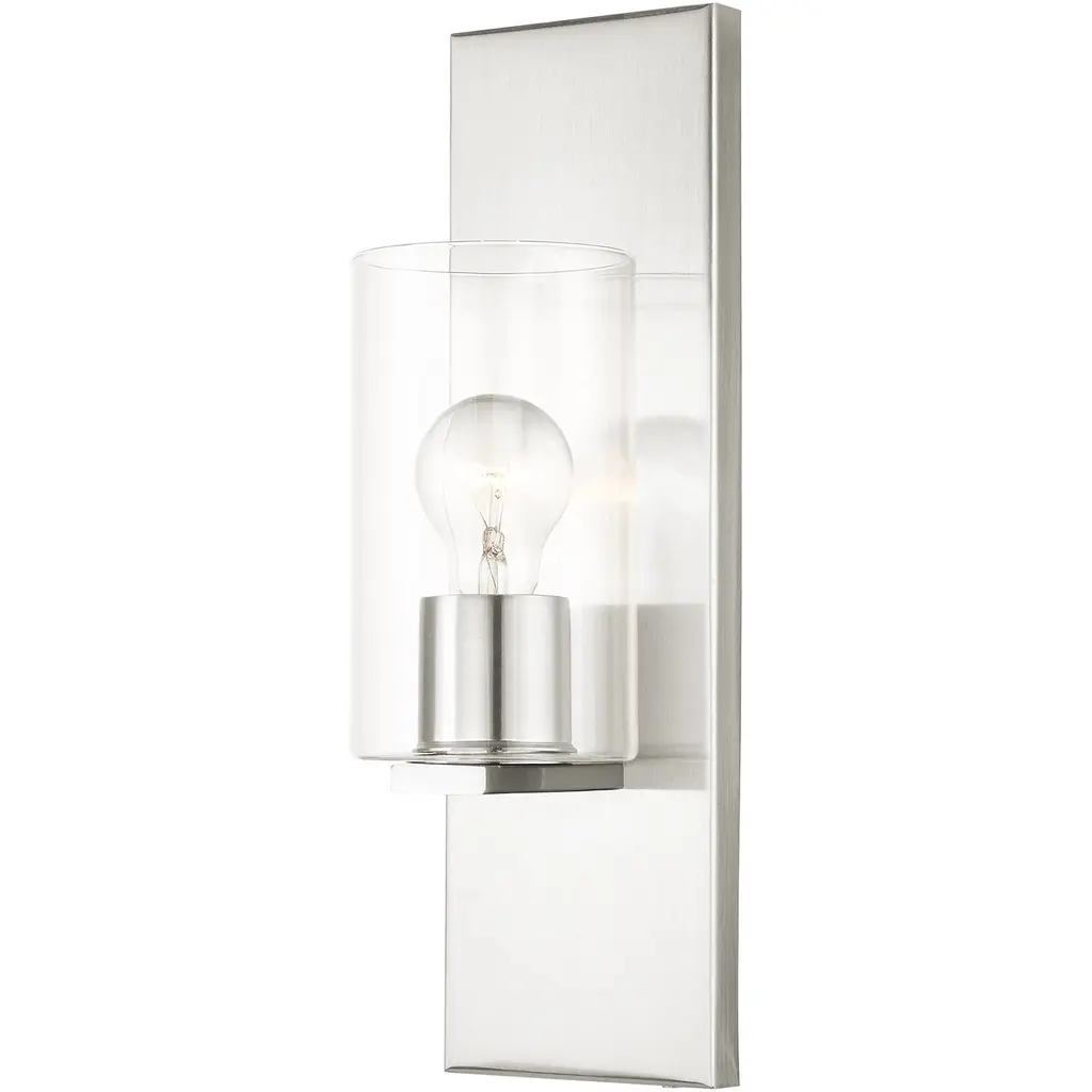 Take the simple approach to adding new light to your modern home with the Raylee Wall Sconce from Alder & Ore. Made of smooth metal, the rectangular backplate mounts directly to the wall and upholds a single crisp bulb encased within a clear glass cylindrical shade. The light is bright and even as it filters through the glass, introducing the room around it to a full demonstration of light that evenly elevates the appeal and décor of the room.