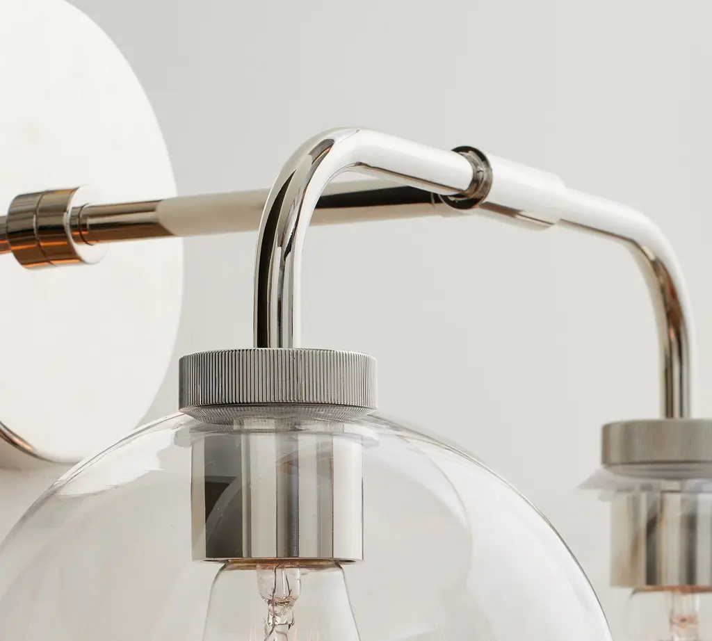 Industrial and modern come together seamlessly in this lighting collection. Mouth-blown glass and durable steel illuminate the bath as beautifully as a breakfast nook. Whether you’re giving your space a refresh or doing a full-on remodel, Reagan’s choice of finishes gives each light longevity and a timeless look.