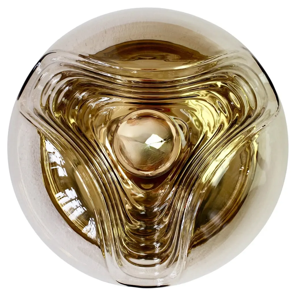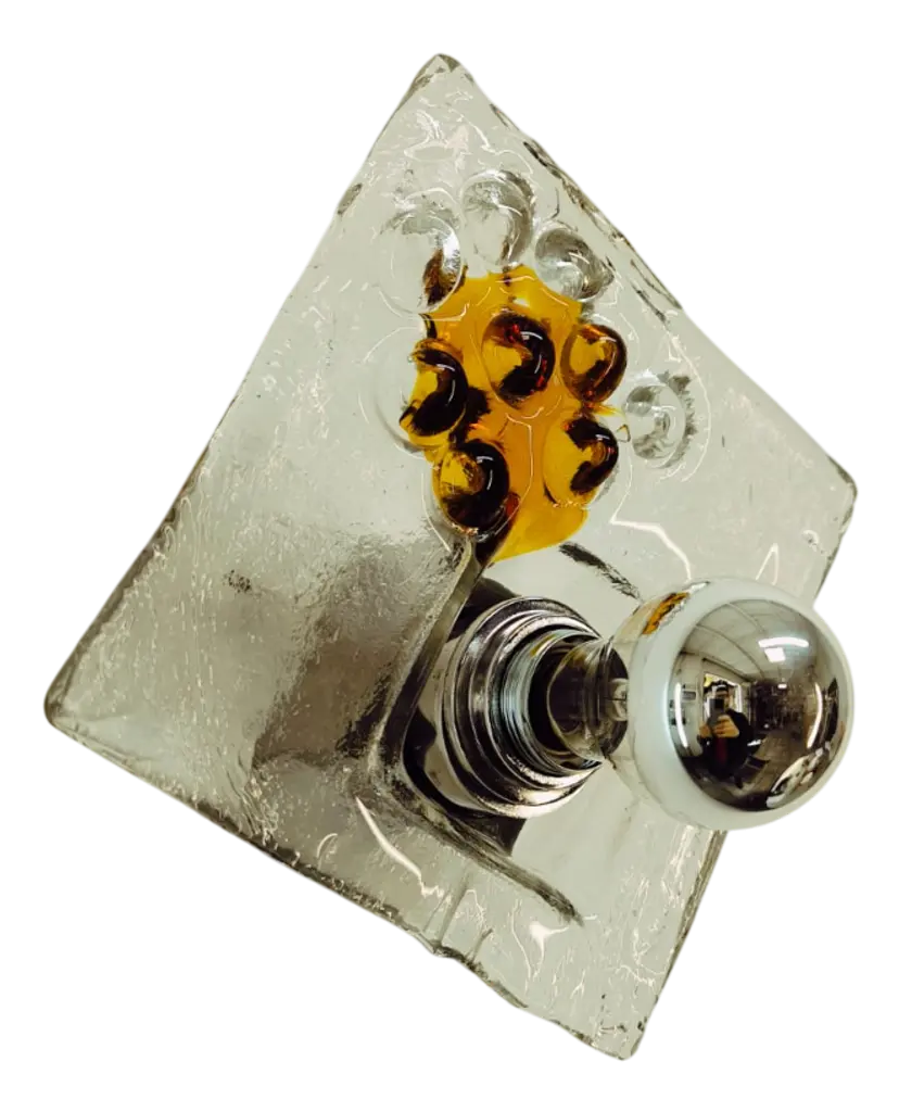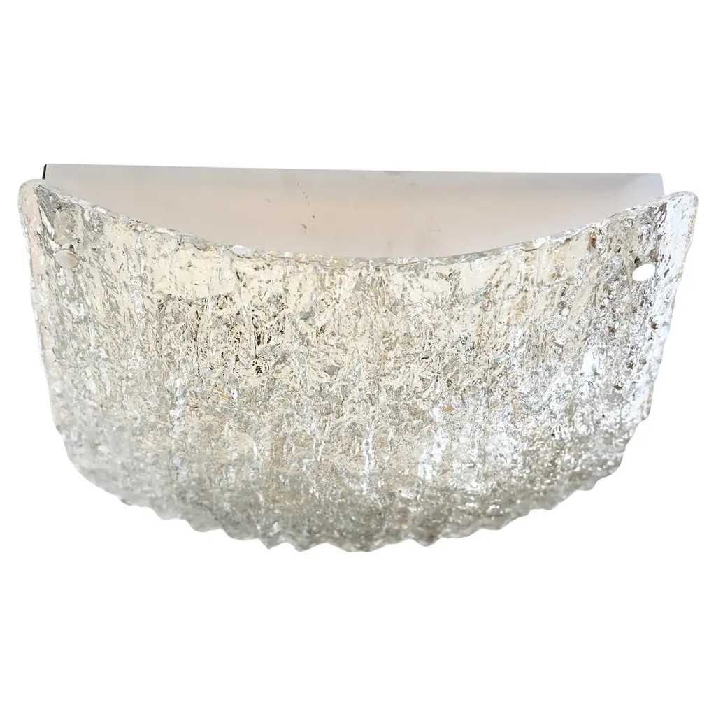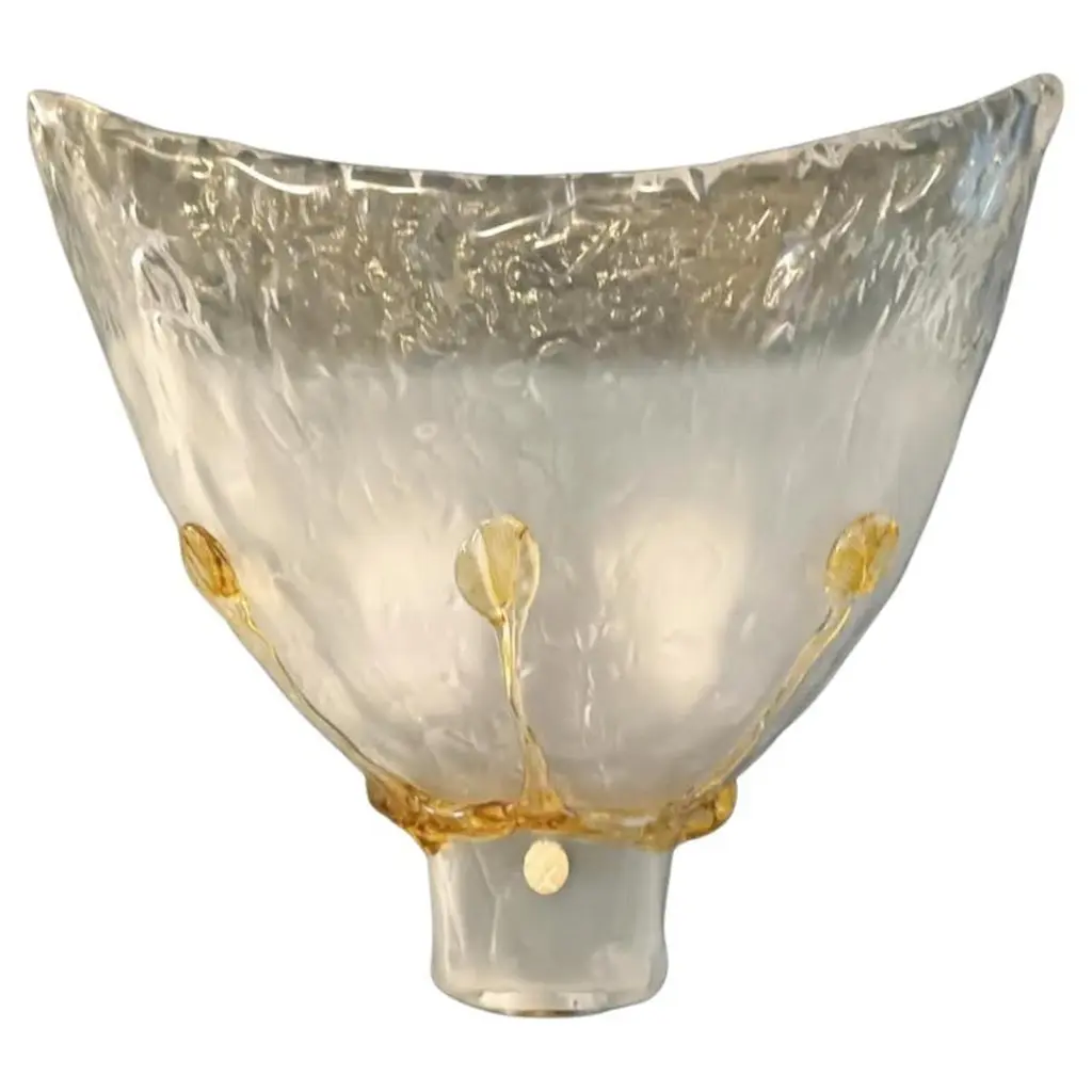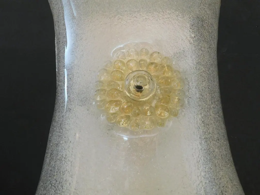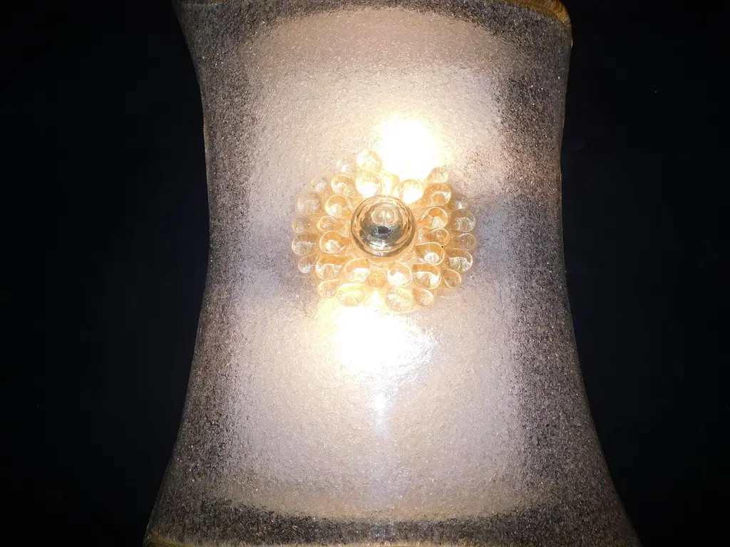 Vintage Italian wall light with a Murano glass shade hand blown in Graniglia technique to produce granular textured effect infused with gold flecks, mounted on white frame / Made in ItalyMeasures: Height 20.5 inches, width 16 inches, depth 5 inches2 lights / E26 or E27 type / max 60W each3 available in stock in Italy, price listed is for each itemOrder reference #: FABIOLTD L64