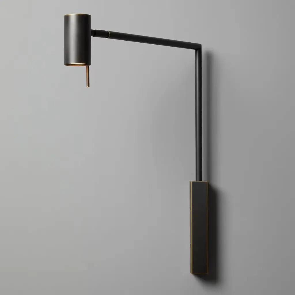 A superb combination of functionality and aesthetics, this wall lamp is characterized by a refined minimalist shape that will uniquely adorn and illuminate a contemporary interior. Fashioned of dark burnished brass, it features a practical adjustable arm supporting a cylindrical shade emitting a directional light from a GU10 PAR16 LED bulb (560lm, 2700°K, and CRI80). Dimmable, it is also available with an external cable, please contact the Concierge for details and price changes.