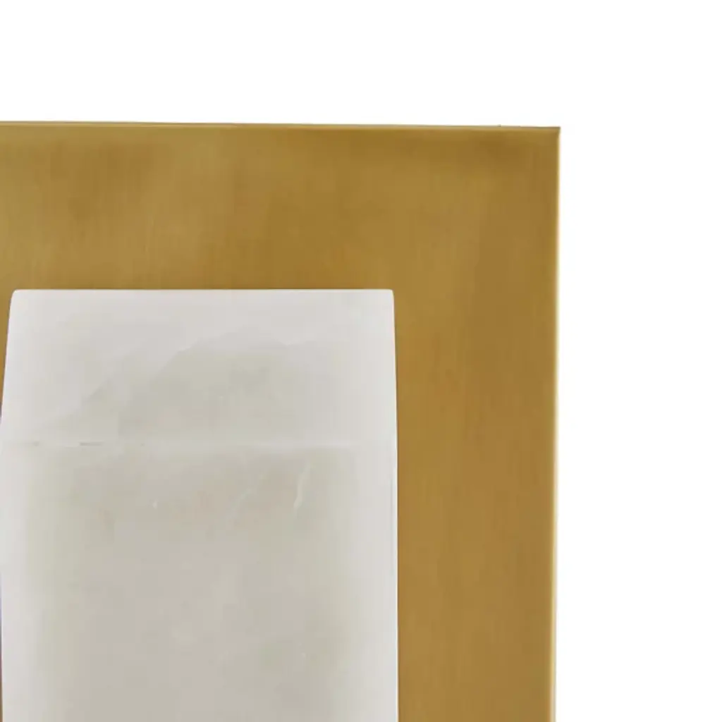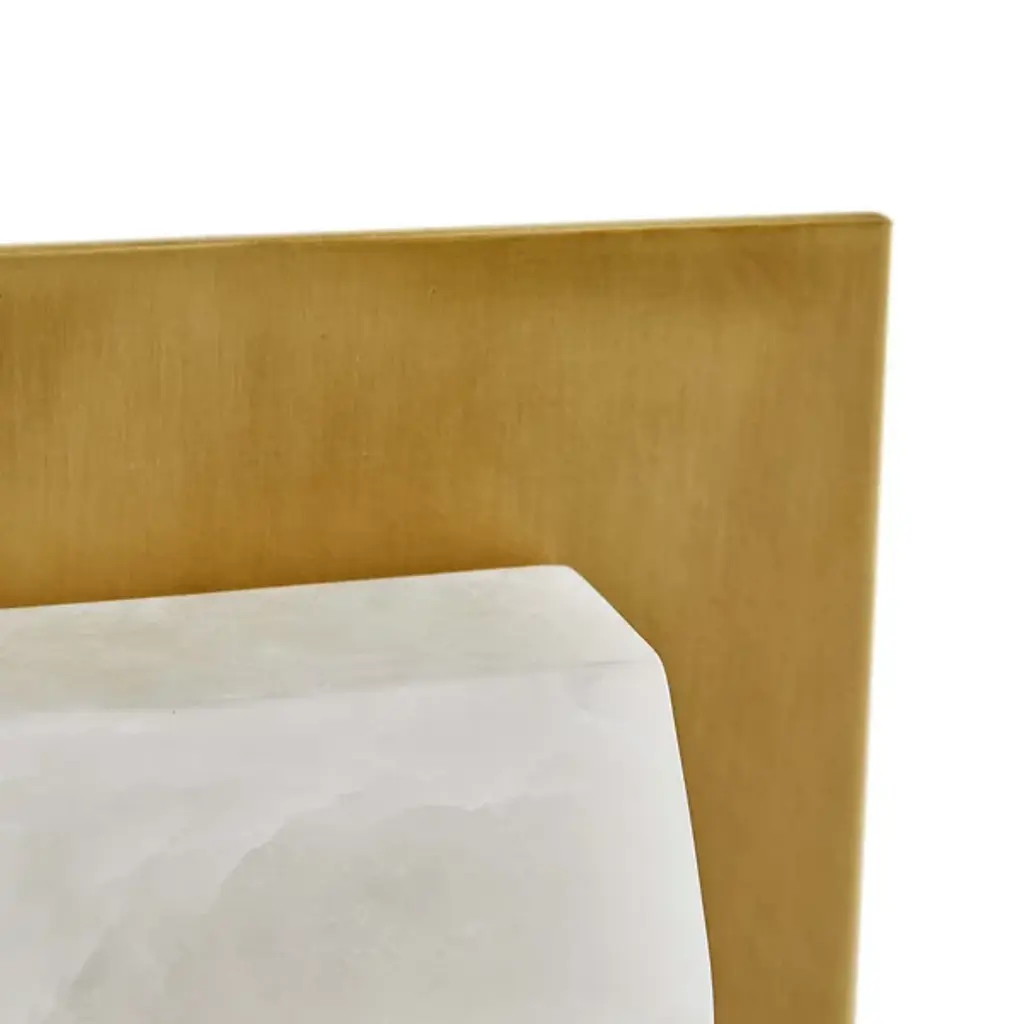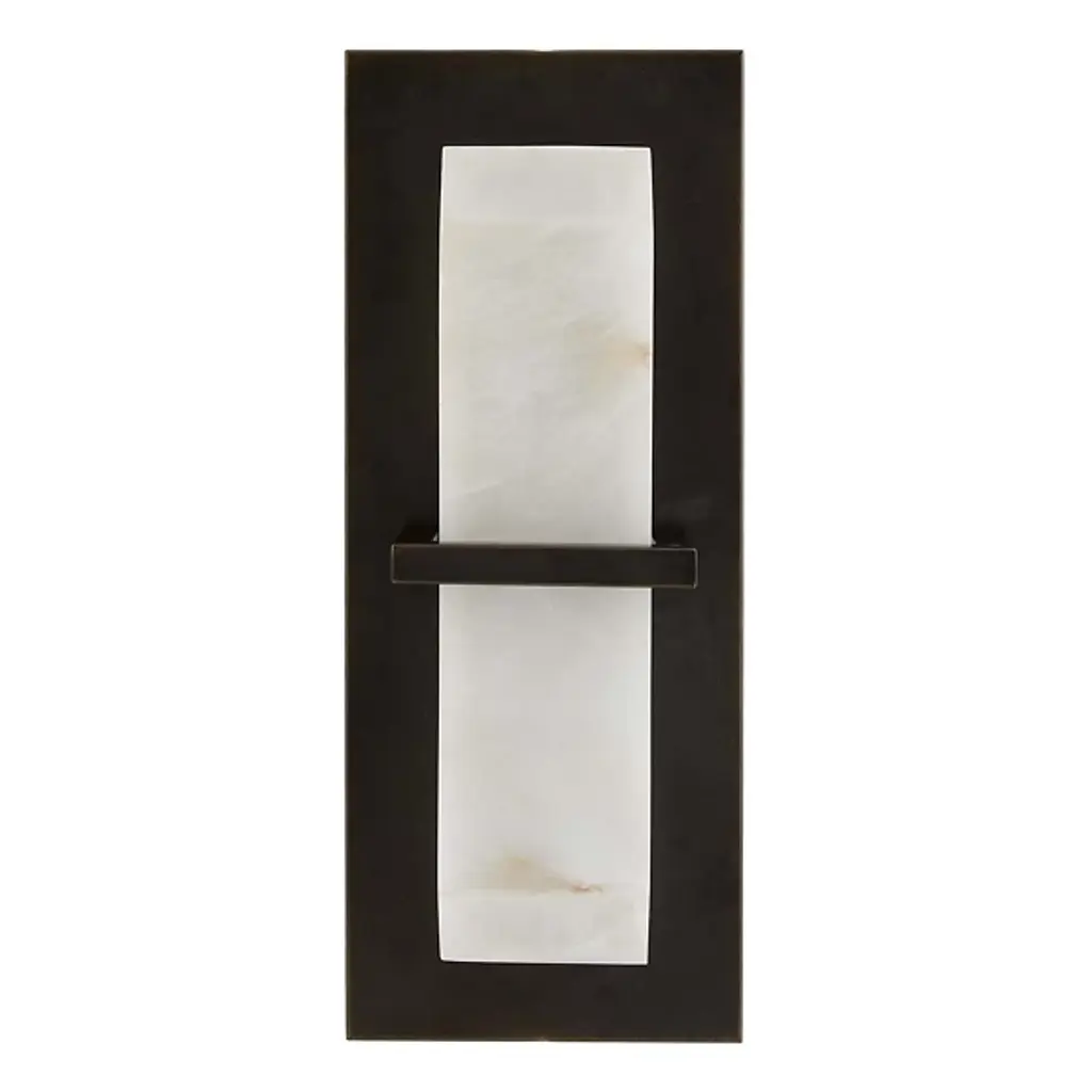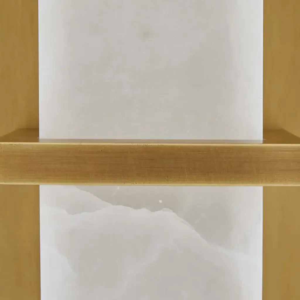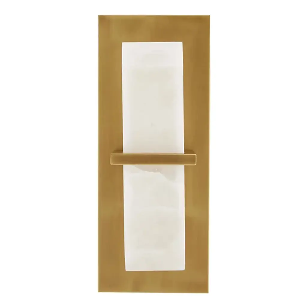 Clean-cut and light filtering like a fine jewel. The Redmond Wall Sconce from Arteriors creates a sophisticated mood with ideal light and a sharp silhouette. The sconce harnesses geometry to accommodate the modern and contemporary setting. It sports a low-profile rectangular backplate one can easily imagine next to an entryway or in between picture frames. This metal backplate’s bold finish brings out the delicate vein accents of the natural alabaster diffuser in front. The faceted alabaster seduces with a golden aura that glazes its surroundings.