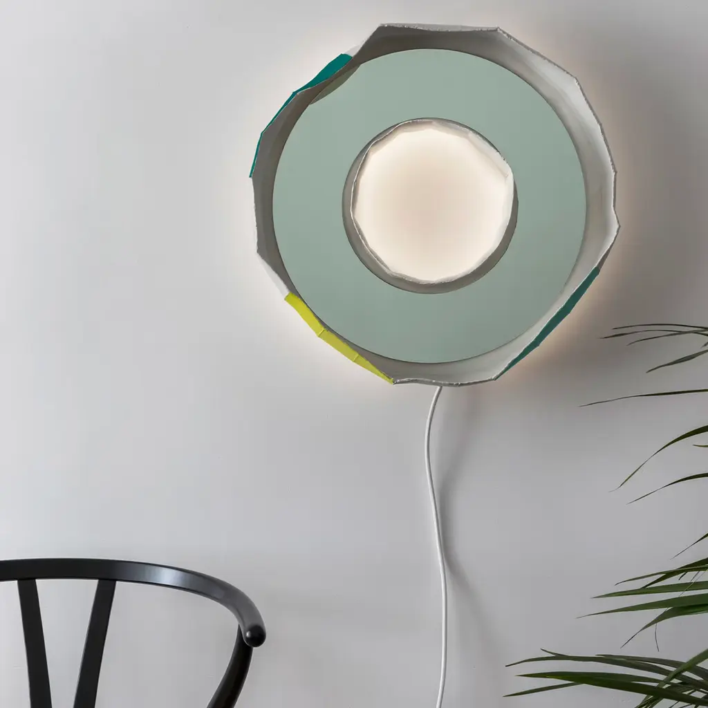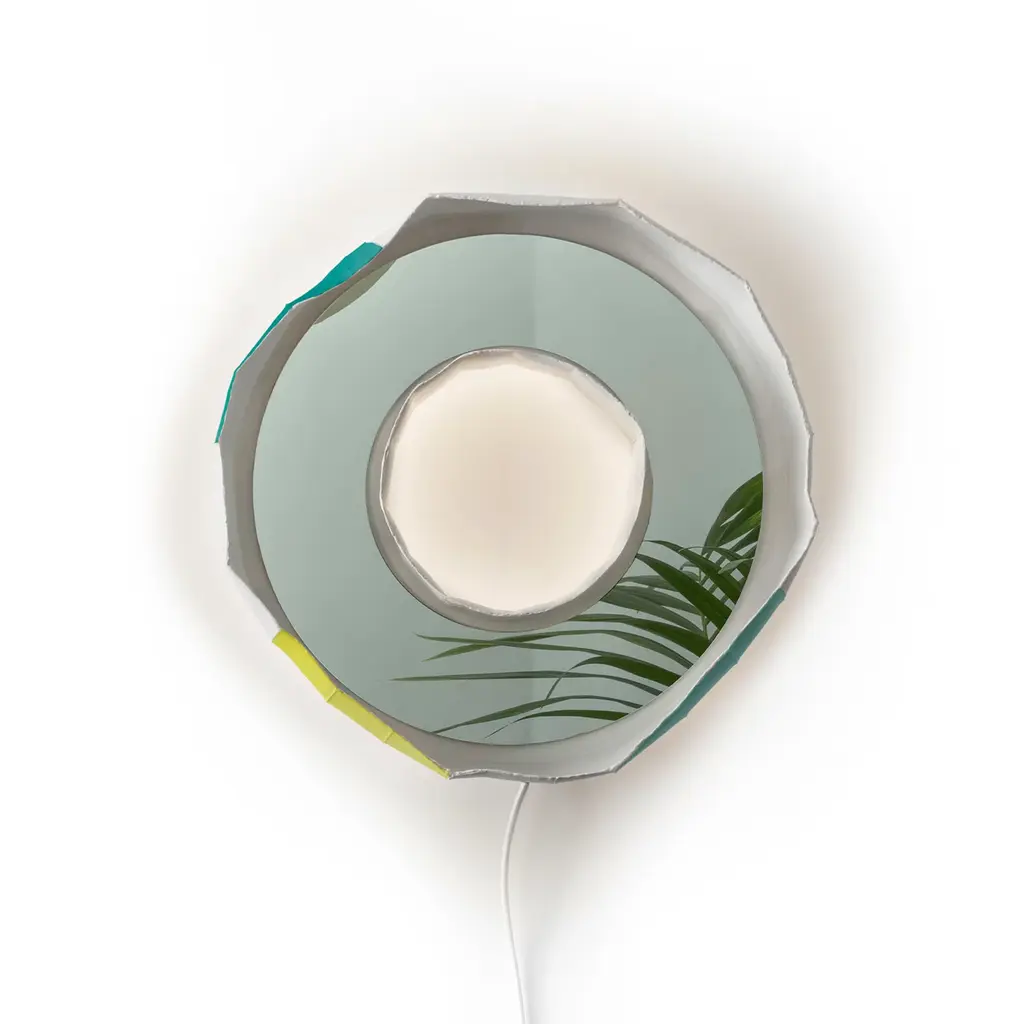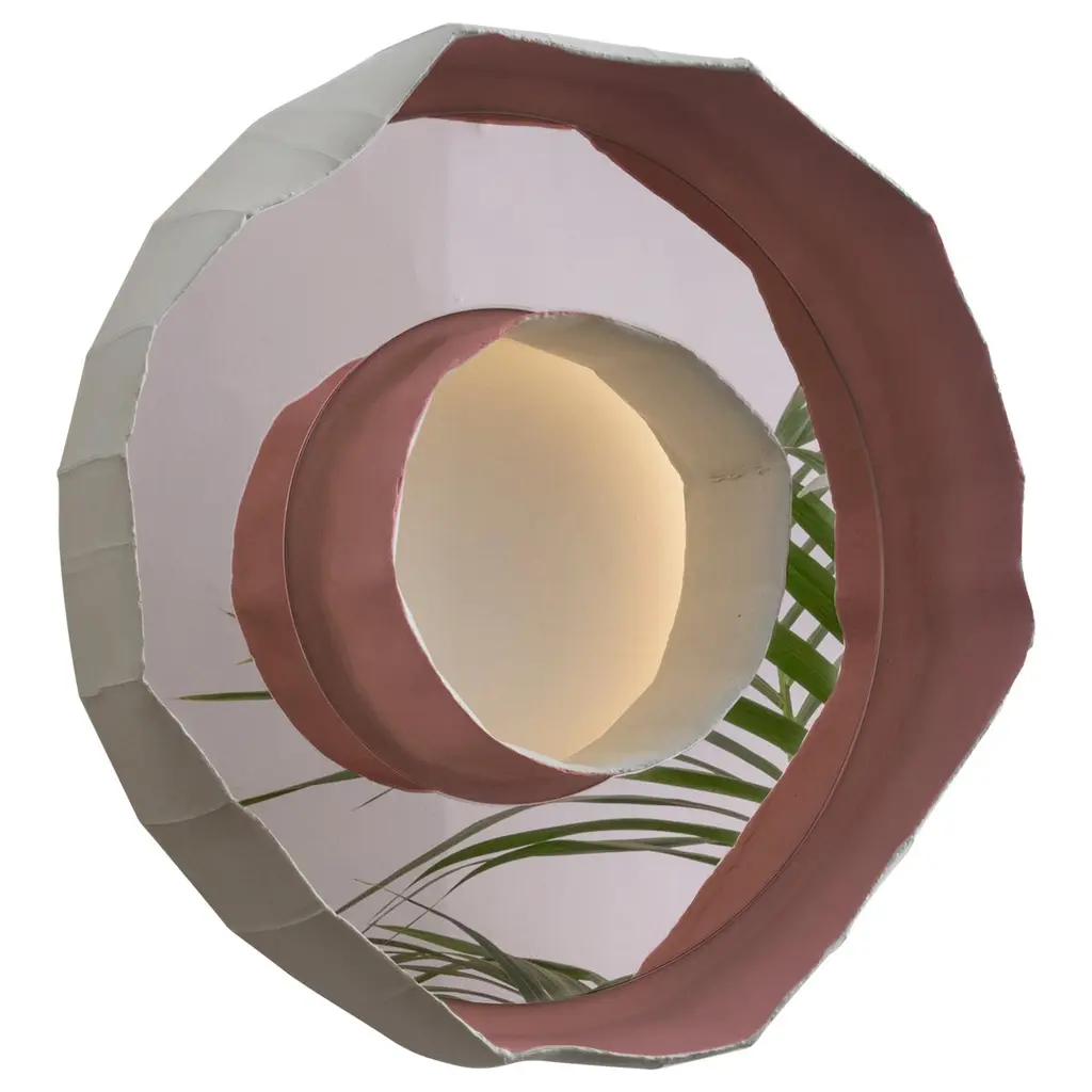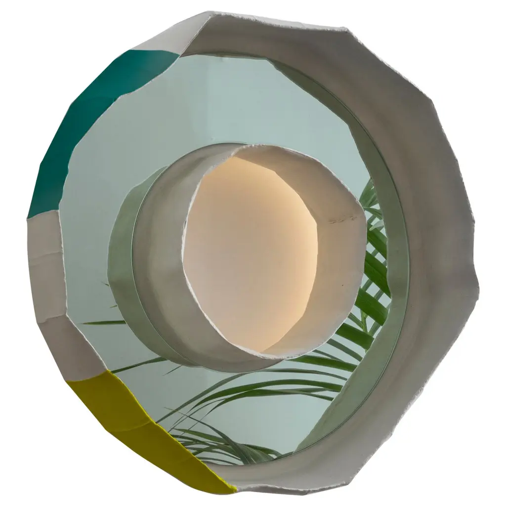 Handmade in Italy by Paola Paronetto & Giovanni Botticelli , this mirror- lamp merges ceramic with glass. REFLECTIONS, a fusion of distinctive materials developed by their creators, unites an apparently light material such as paper clay with the crisp lines of the mirror. The result is a thoughtful and meticulous balance, warm and delicate. The chromatic harmony is purposeful and unites the two materials seamlessly. Available in 5 colors options plus an extensive palette of colors for bespoke requests.