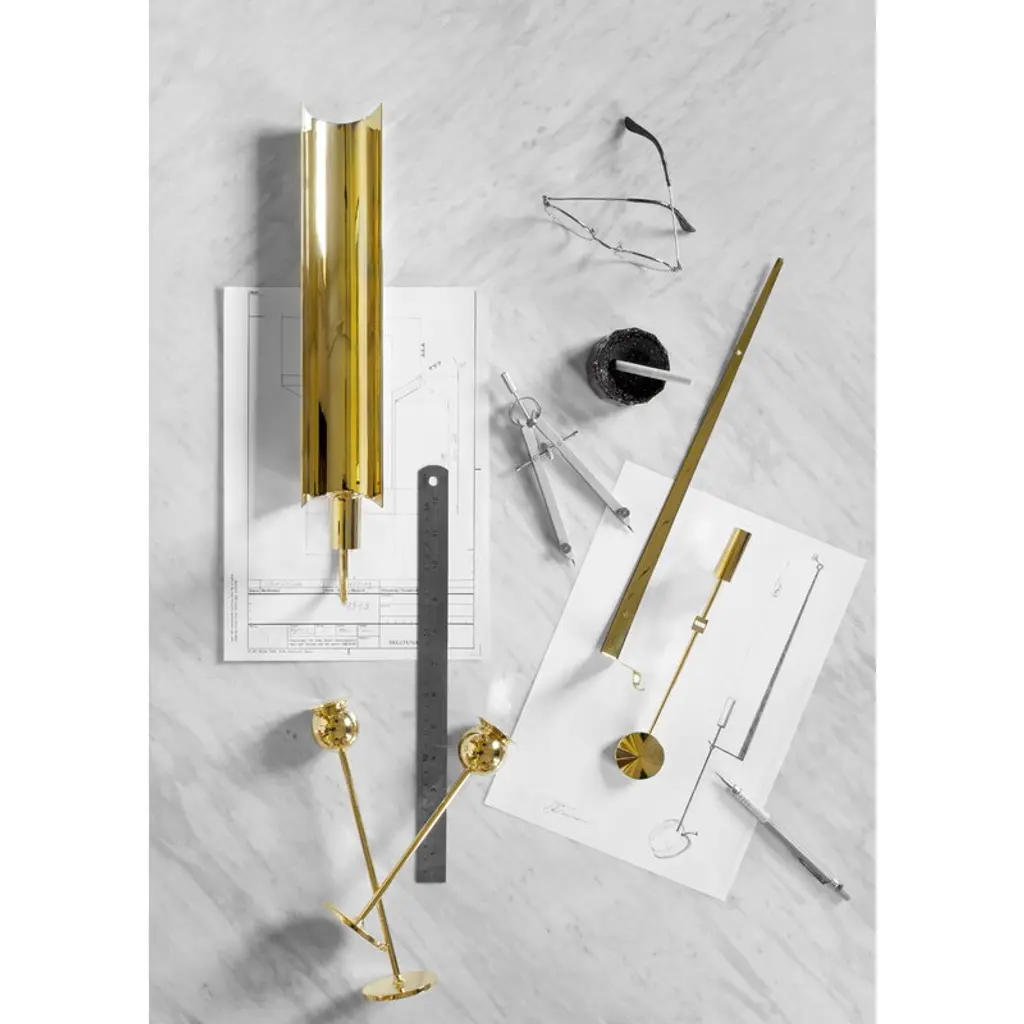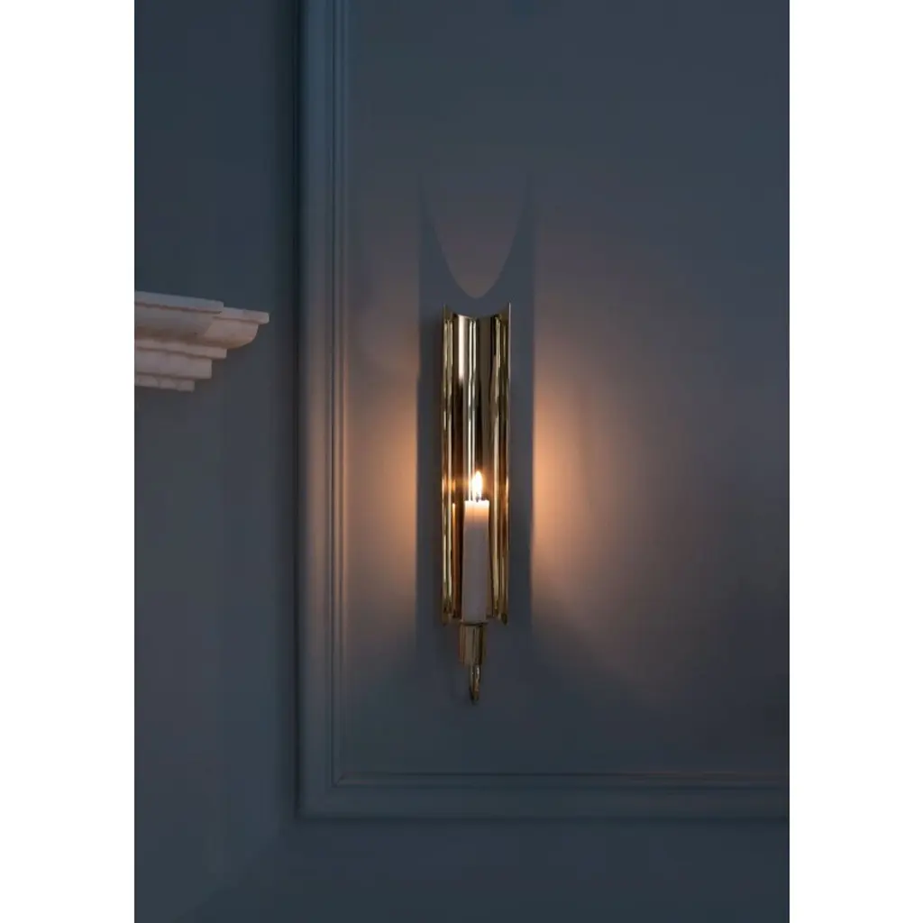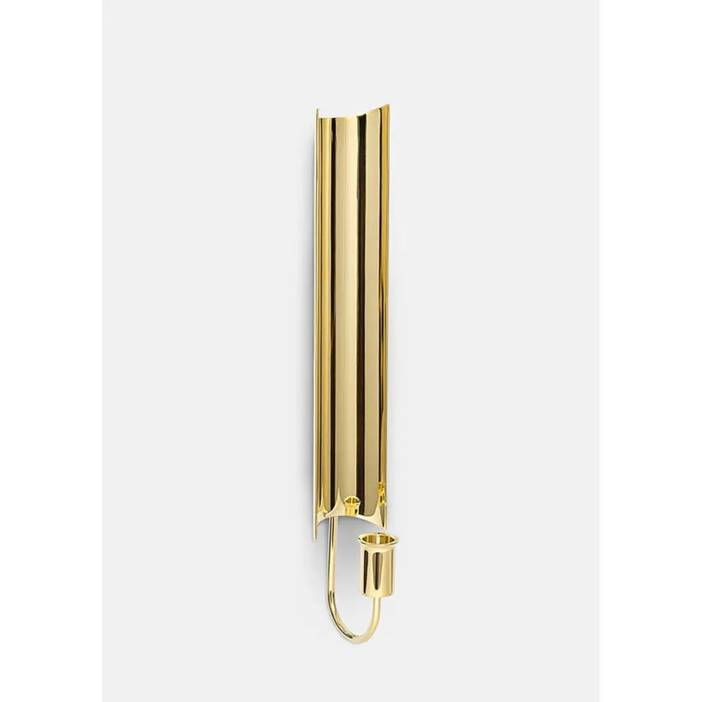 Skultuna's Reflex sconce captivates with its refined simplicity, showcasing only what truly matters – an elegantly slender form and the luxurious glow of polished brass that reflects the candle's warm glow. The minimalist wall candle holder was crafted in the late 1950s by Pierre Forssell, a silversmith and designer, whose vision brought timeless elegance to the piece.