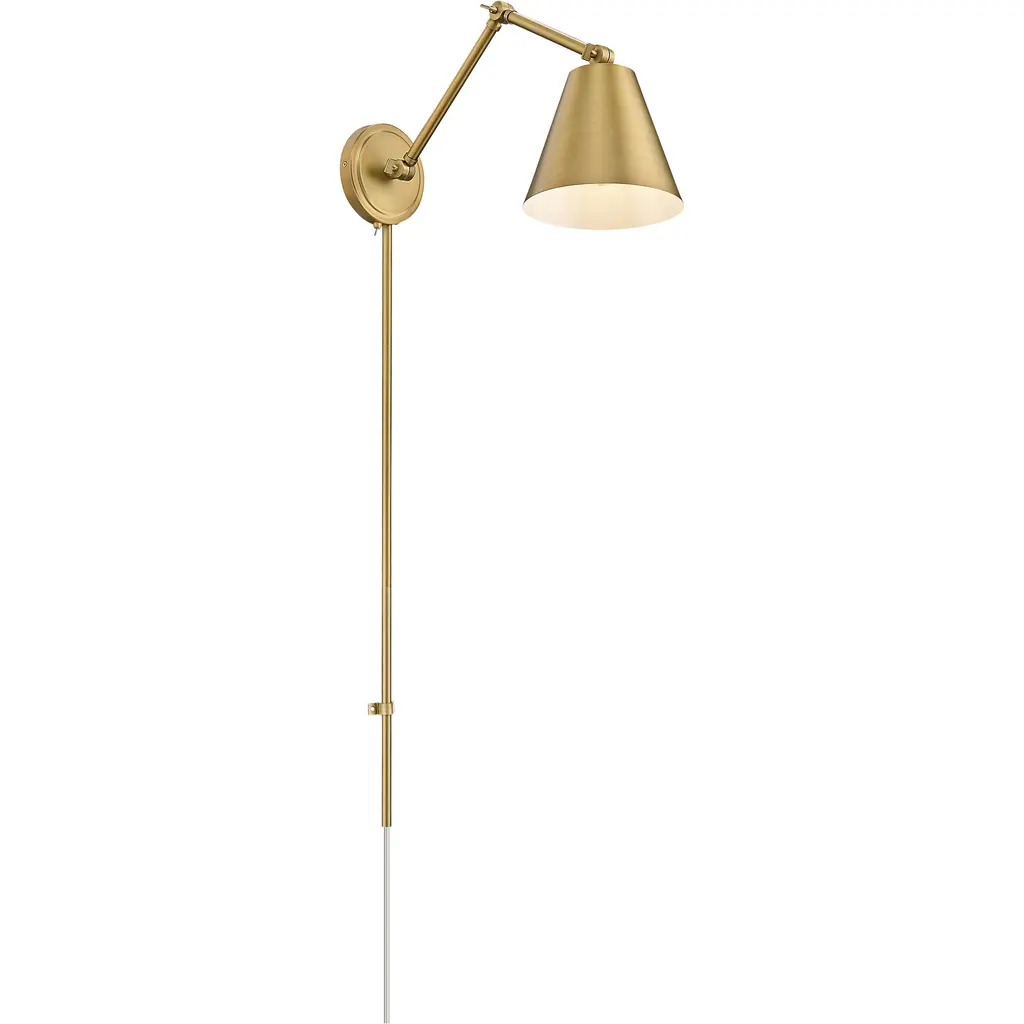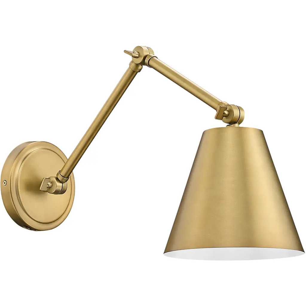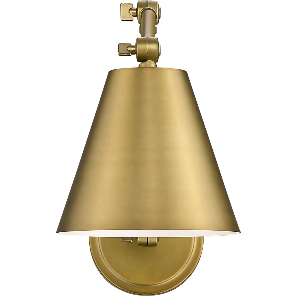 The decadent warmth of warm rubbed brass creates an ideal finish for updating transitional spaces as this one-light wall sconce perfects versatility. Steel construction is true to its functional aesthetic, making the most of a wall-mounted light offering adjustable positioning of a cone shade. This fixture makes an excellent light for reading and task-mastering, as well as mood lighting ideal for a low-key setting.