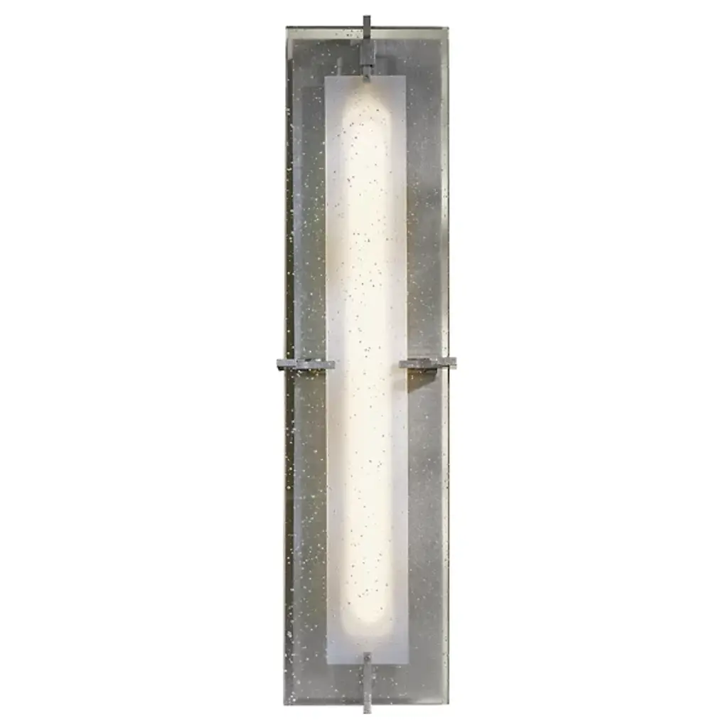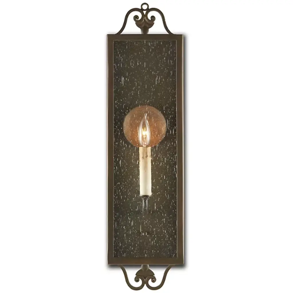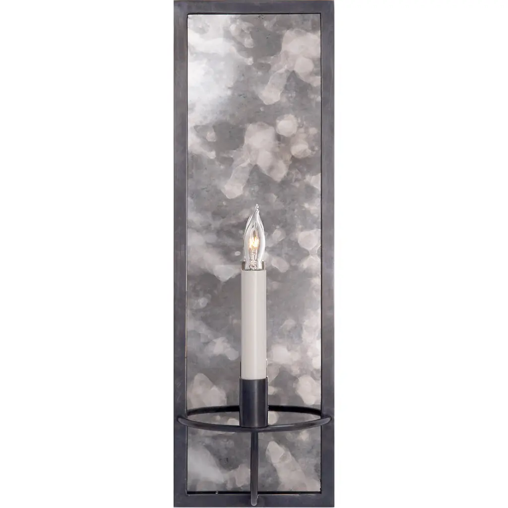 Sophisticated and stunning. The Regent Rectangular Wall Sconce is a transitional piece from Visual Comfort Signature, formerly known as Visual Comfort, Designed by Niermann Weeks, the contemporary style fuses with farmhouse aesthetics to present a distinctive luxury light furnishing. Composed of crystal and brass in an elegant finish, the cloudy, dappled effect on the decorative mounting plate draws the eye as it frames the single candelabra fixture. It seems to float on a halo of metal, which is yet another reason why the Regent is so alluring.