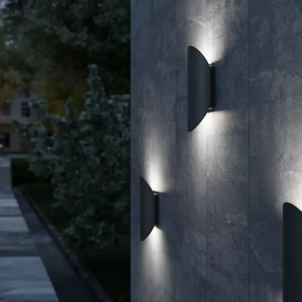 Bring your outdoor setting to life with the Remy Outdoor LED Wall Sconce from AFX. This outdoor sconce has a unique, untraditional shape. Made from premium 100% aluminum, this fixture feels otherworldly yet structurally sound. With integrated LED technology behind its curved shield, it offers vivid lighting, while its dimmable functionality and wet location rating make it a versatile choice for various outdoor environments. Experience the perfect blend of style and practicality.
