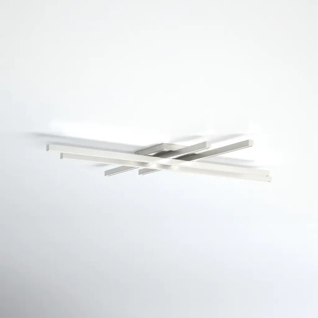 A minimalist take on the sputnik chandelier. This 1-light, sputnik-inspired flush mount makes a statement with its overlapped, multi-linear design. Crafted with white plastic and metal, its lean, clean-lined arms are illuminated along their entire length with energy-efficient integrated LED light. This light fixture attaches to a square backplate that affixes to your ceiling, or mount it on your wall as a dramatic sconce. It's rated safe for damp locations and is compatible with a dimmer switch.