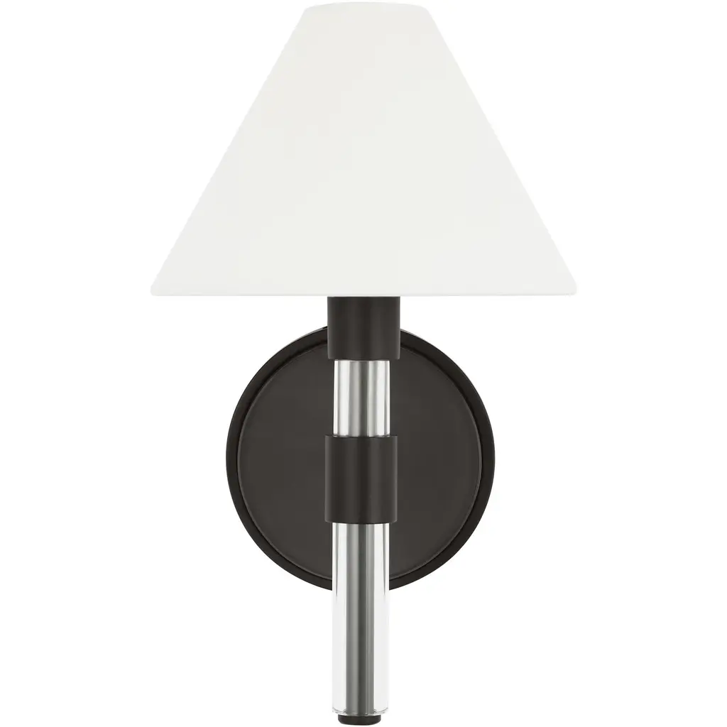 Modernity with a classic face. Borrowing vintage aesthetics and marrying them to forward-thinking design language, the Renee Wall Sconce by Crystorama is a truly timeless specimen. Its antiqued hardware and tapered shade are distinctly traditional, while sophisticated crystal accents extend from its top and bottom to create a futuristic illusion of continuity.