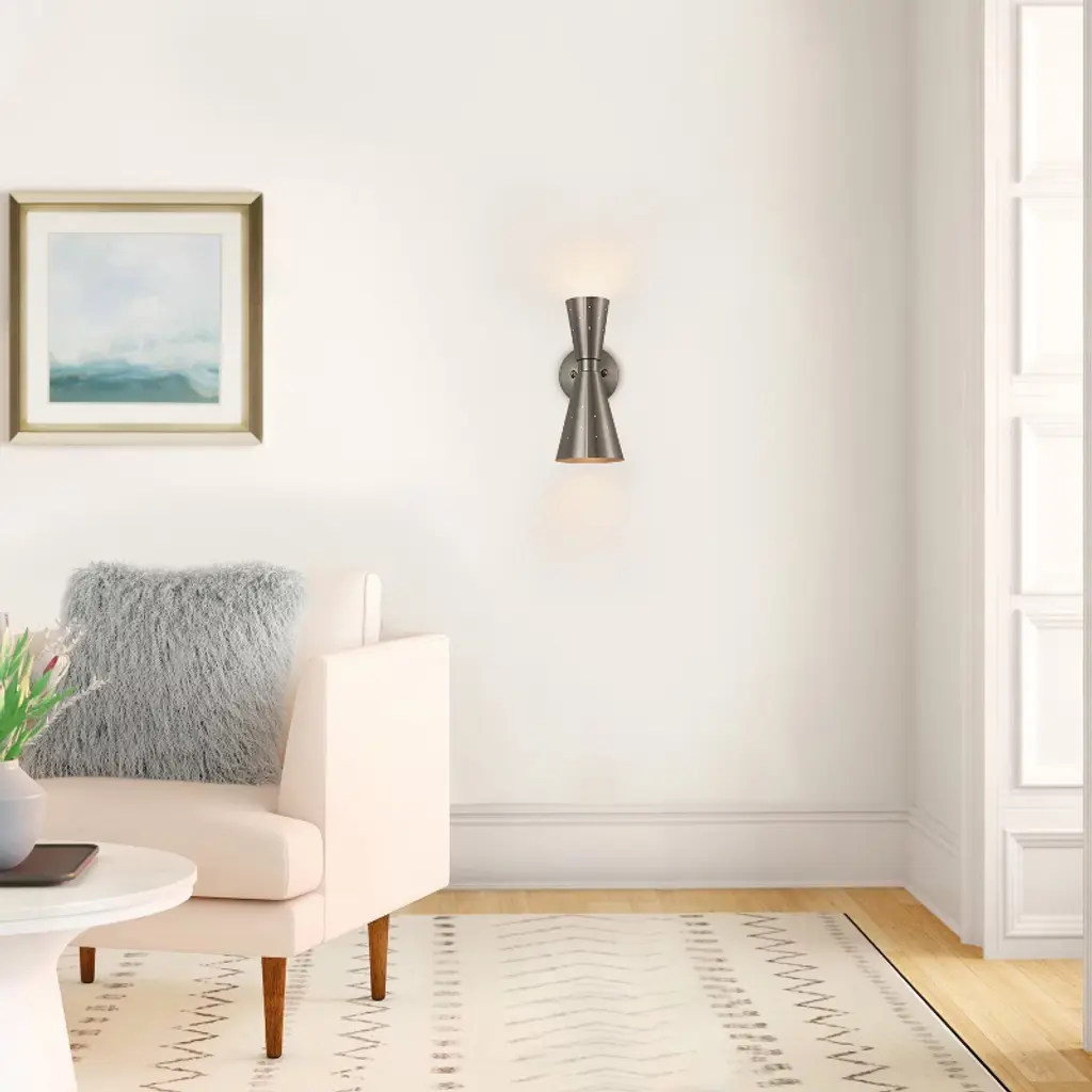 Rennnsan Novara 13" Hardwired 2 -Light Dimmable Mid-century Dimmable Wall Sconce In Silver