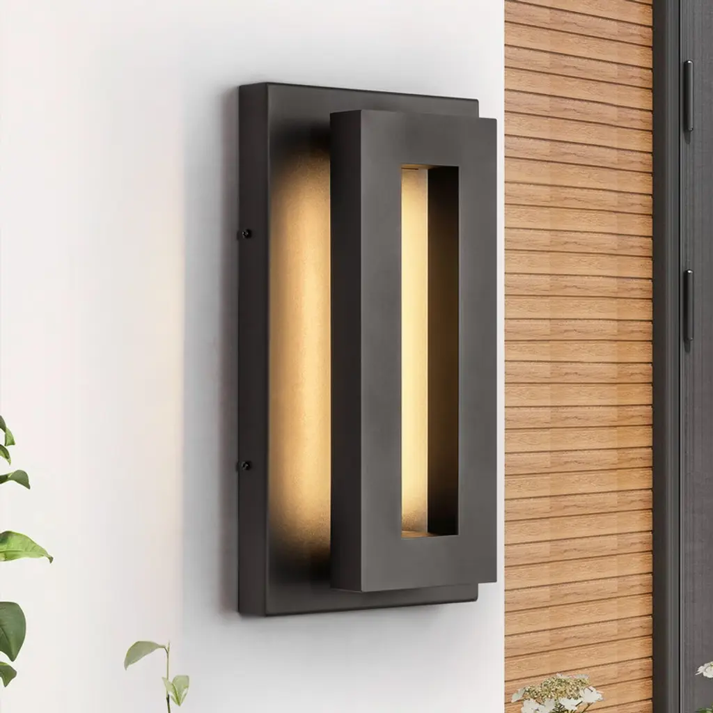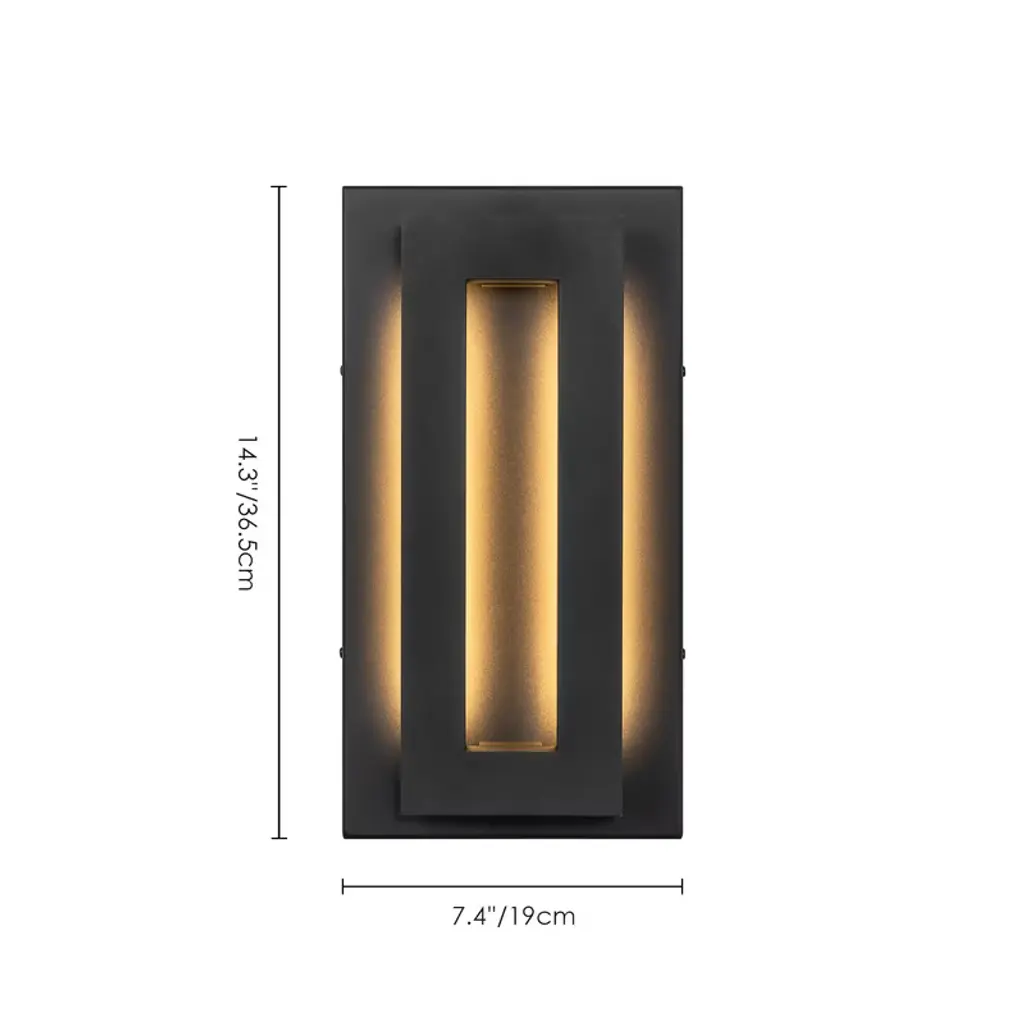 Introduce modern geometry to your exterior with this 14-inch LED wall light featuring a hollow square frame and sculptural design. Crafted for minimalist and architectural aesthetics, it emits sharp up/down beams for striking visual impact. With 1440 lumens of warm, dimmable light, this fixture enhances both ambiance and security. The IP54-rated aluminum body ensures rust resistance and long-lasting durability in all weather conditions. Easy to install and energy-efficient, it¡¯s ideal for entryways, patios, or commercial fa?ades. Elevate your outdoor space with functional artistry that complements contemporary architecture.