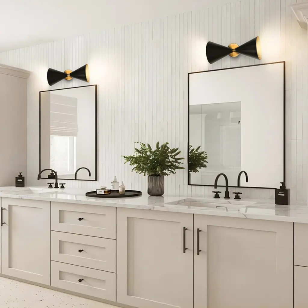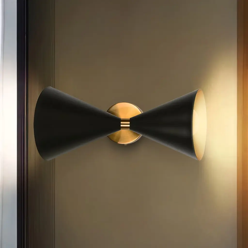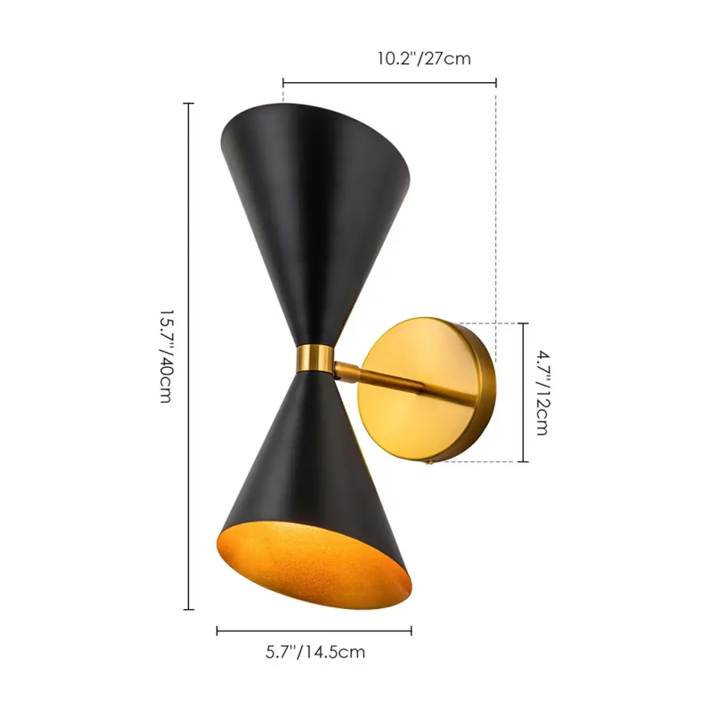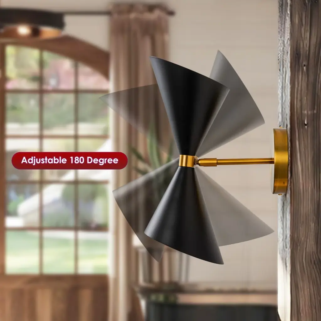 Elevate your space with this 14-inch Mid-Century Modern wall sconce featuring a sculptural flared silhouette that blends retro charm with contemporary elegance. Enjoy dimmable lighting that adapts effortlessly to reading, relaxing, or entertaining. The dual-head design offers balanced illumination, perfect for hallways, bedrooms, or living areas. Crafted for convenience, it includes all mounting accessories and fits standard E26 base 60W bulbs (not included). The trumpet-inspired shape creates visual interest while enhancing your decor with a warm, ambient glow. Ideal for those who appreciate functional artistry in everyday lighting.