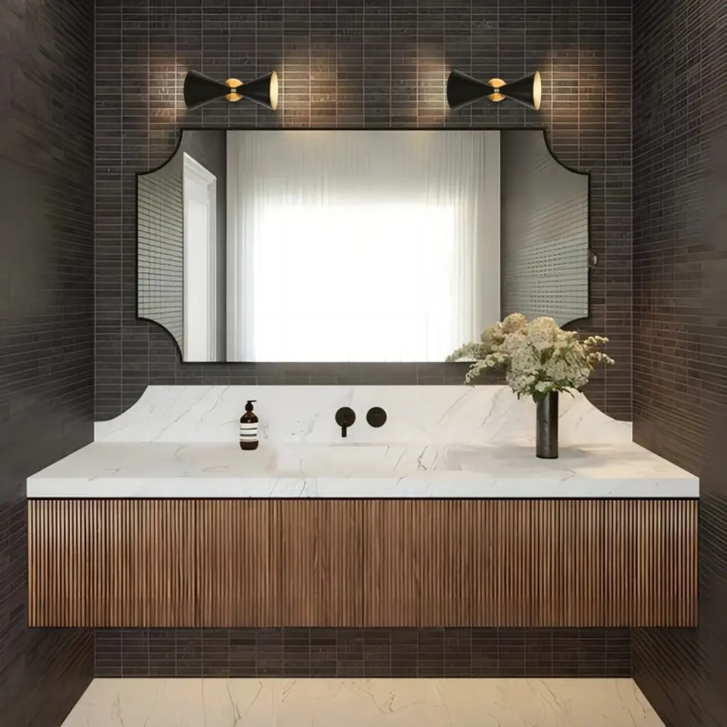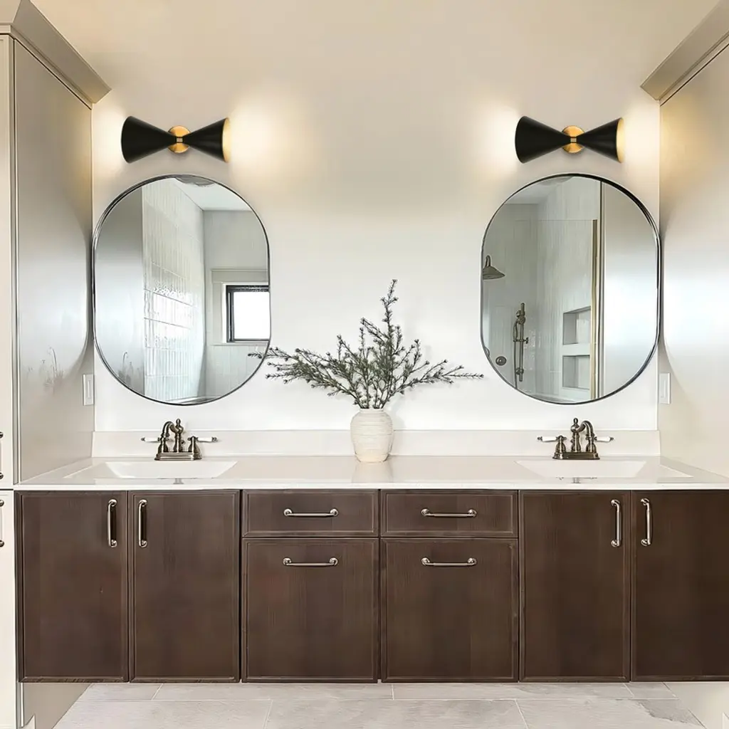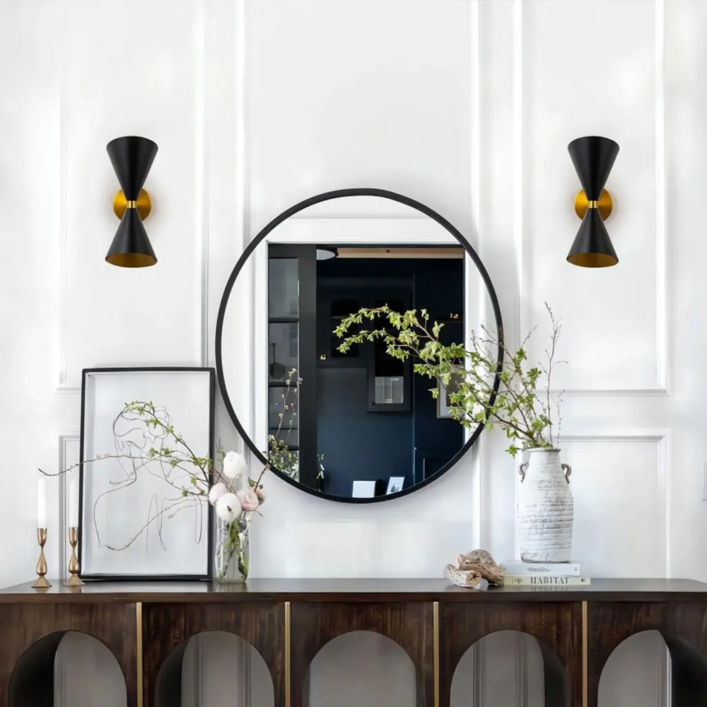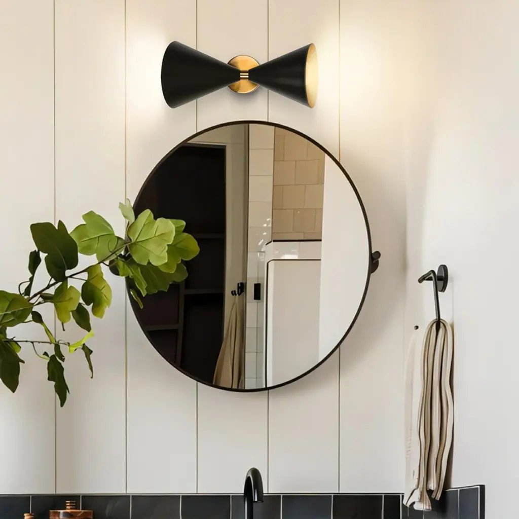 Elevate your space with this 14-inch Mid-Century Modern wall sconce featuring a sculptural flared silhouette that blends retro charm with contemporary elegance. Enjoy dimmable lighting that adapts effortlessly to reading, relaxing, or entertaining. The dual-head design offers balanced illumination, perfect for hallways, bedrooms, or living areas. Crafted for convenience, it includes all mounting accessories and fits standard E26 base 60W bulbs (not included). The trumpet-inspired shape creates visual interest while enhancing your decor with a warm, ambient glow. Ideal for those who appreciate functional artistry in everyday lighting.