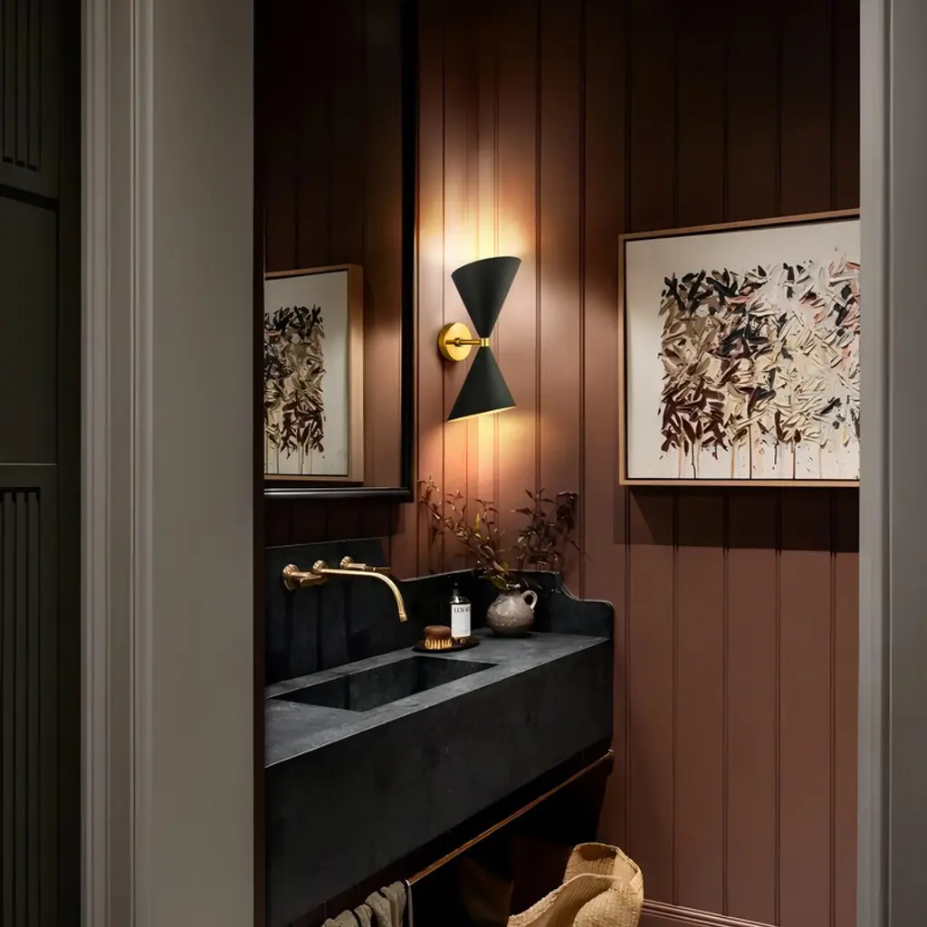 Rennnsan Tristalyn 14"h Hardwired 2-light Hourglass Shape Mid-century Modern Dimmable Wall Sconce In Black