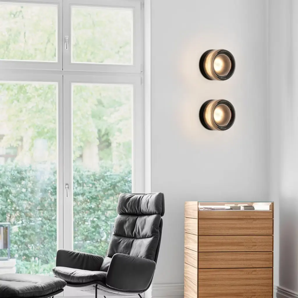 Rennnsan Velden 5" W Hardwired Round Smoke Glass Modern Led Dimmable Wall Sconce In Black