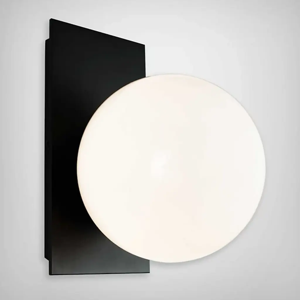 The Restoration WOB8 Wall Sconce from Baselite pairs a rectangular aluminum backplate with a spherical frosted glass globe that extends outward from the wall surface. The frosted glass diffuses light in all directions, while the geometric backplate provides secure mounting and adds architectural interest. This sconce offers complete dimming control to create appropriate lighting levels for hallways, bedrooms, or living areas throughout different times of day. The globe design provides 360-degree illumination that brightens surrounding wall surfaces effectively.