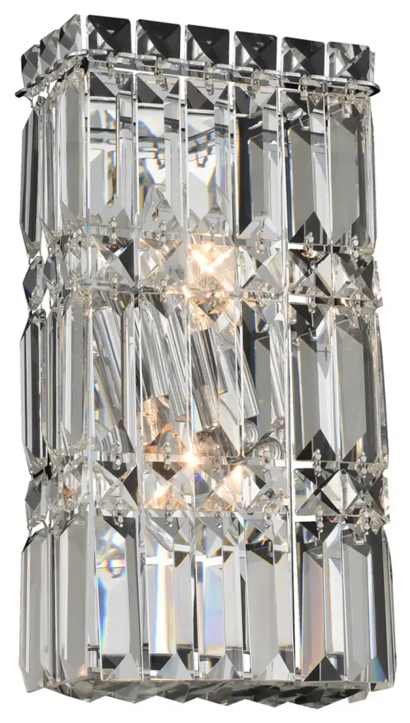 From the Rettangolo collection this Transitional 7Wx13H inch 2 Light Sconce will be a wonderful compliment to any of these rooms: Hallway; Bedroom; Living Room; Dining Room Dry Power: Hardwire Lamping: 2 x 40W Incandescent Bulbs Included: N A modern classic the Rettangolo Collection features a Polished Chrome finish with Square & Baguette Firenze crystals.