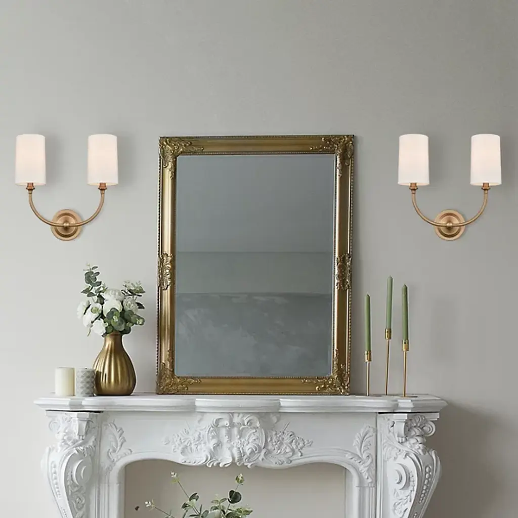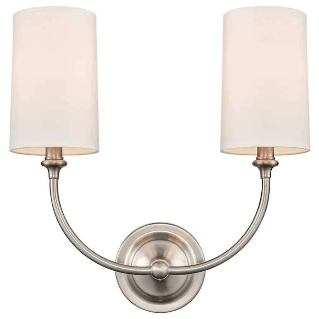 Inspired by the elegant lighting in 5-star hotels, the Reuben Double Wall Sconce by Alder & Ore elevates the aesthetic of a home or office. The steel design captures attention with its central circular wall plate and upward-sweeping curved arms, each holding a single candelabra-style light. Two off-white drum shades add a traditional touch as they softly diffuse the light in a foyer, hallway, or living room. These wall mounted sconces are perfect in pairs for framing a large decorative mirror or highlighting architectural features in your home.