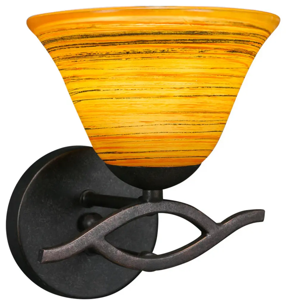 The beauty of our entire product line is the opportunity to create a look all of your own, as we now offer over 40 glass shade choices, with most being available as an option on every lighting family. So, as you can see, your variations are limitless. It really doesn''t matter if your project requires Traditional, Transitional, or Contemporary styling, as our fixtures will fit most any decor.Revo Wall Sconce Shown In Dark Granite Finish With 7 Fire Saturn GlassWarranty Length: 1 YearType of Bulb: IncandescentBulb Base: MediumLamp Type: MediumBulb Included: NoNumber Of Bulbs Needed: 1Wattage: 100UL/ADA/CUL/CSA: UL/CULUL Application: Wall