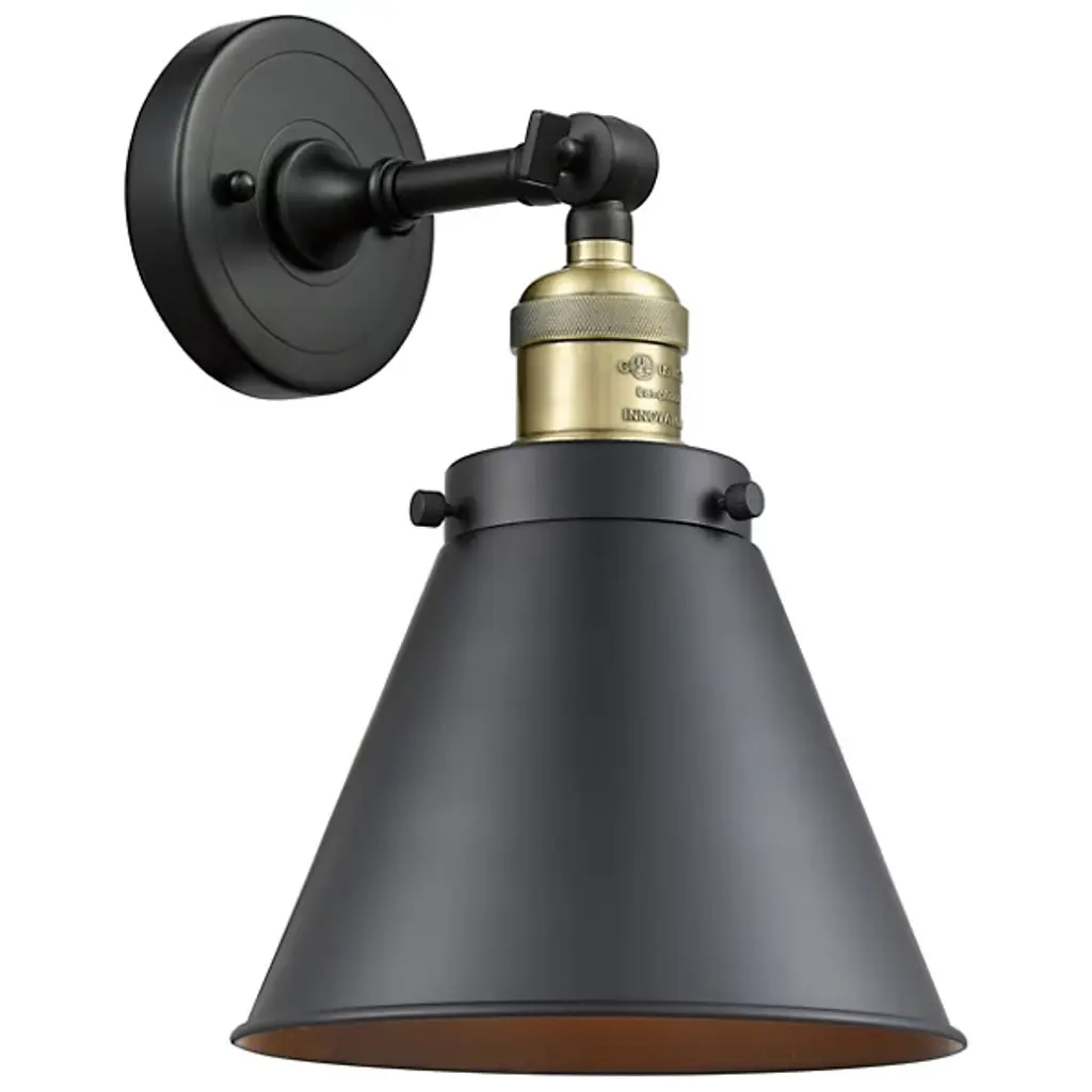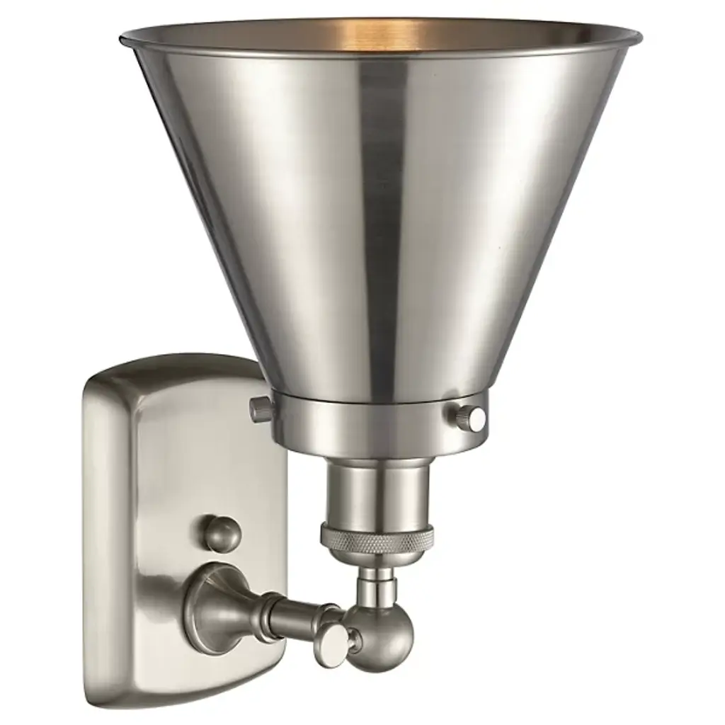 The Rey Wall Sconce by Alder & Ore blends stark industrial components with rounded bevels and curvy turned metal details to give this wall light its universal appeal. Crafted from steel and cast brass, the design features a single bulb in a tapered cone shade. An adjustable ball swivel allows for up or down lighting, with internal teeth that lock it in place. Perfect in pairs, designer Bruno Marashlian pulls from a variety of styles to create this decorative wall sconce, at home in a foyer, hallway, kitchen, bath, or bedroom.