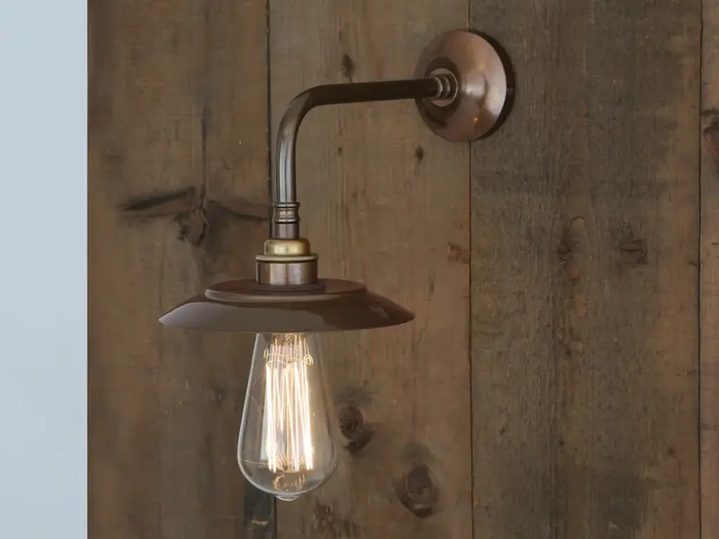 Reznor industrial wall light.Material BrassProjection 31cm | 12.25”Weight 0.518kgMax Wattage 60wVoltage 220/240vLampholder E27 | ES | Edison ScrewIP Rating IP20Wall Bracket MLWB03