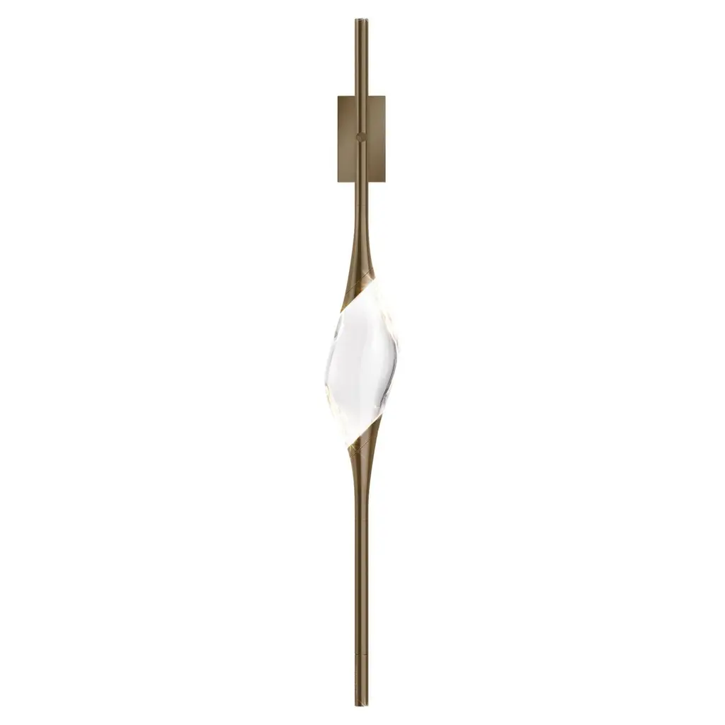 A fine ribbon of handcrafted steel, pierced by a solitary Swarovski crystal is at the heart of Rhapsody''s design. An LED light source, concealed within a metal enclosure, shines down to illuminate the delicate artistry. ADA compliant LED wall sconce with a Swarovski cone-shaped crystal. Choose a finish option for the backplate and lightsource housing and an accent finish option for the decorative metal accent.Handcrafted to order in Vermont, USALifetime Limited Warranty when installed in residential settingDedicated LED: 16 watt, 3000K CCT, 90 CRI, 350 delivered lumens, 120 vAC input voltage, Line Voltage/ELV dimmingUL Approved, DampADA compliantAll Hubbardton Forge products are hand-crafted to last one at a time in Vermont and backed by a Lifetime Limited Warranty.