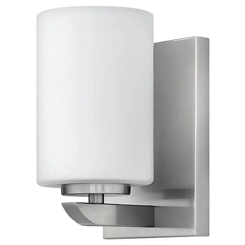 Illuminate your bathroom with the modern allure of Rhett Small Bath Vanity Light from Generation Lighting. It is crafted from durable steel, and this fixture blends sleek design with robust construction. The glass shade adds a touch of elegance while casting a soft, diffused glow. Perfect for contemporary spaces, this vanity light elevates your bathroom decor with its stylish aesthetic and functional illumination, creating a sophisticated ambiance for your daily routine.