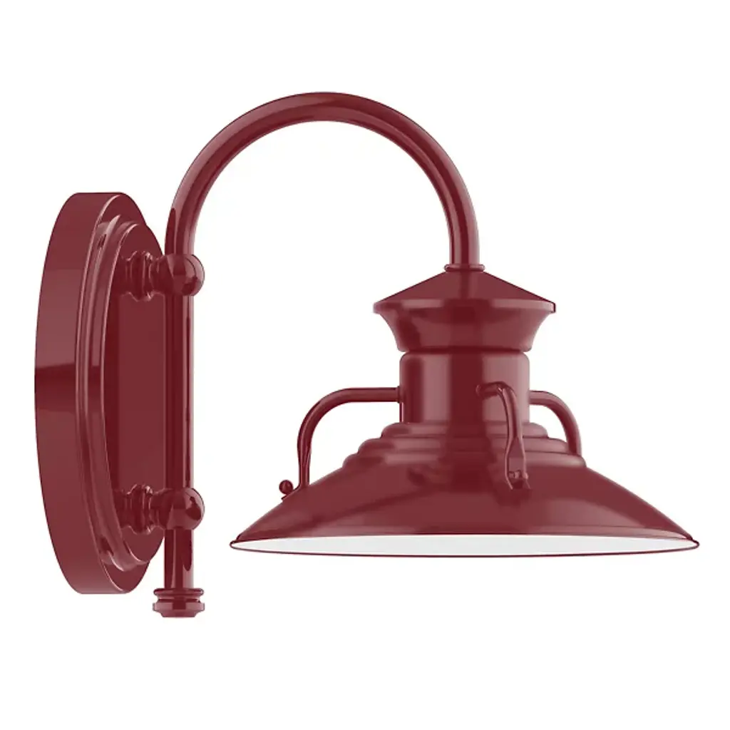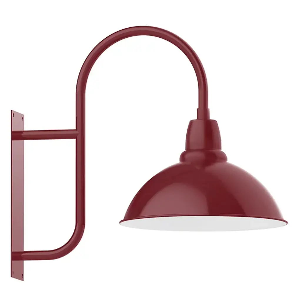 While designed for the most rugged conditions, the Rhoda Outdoor Gooseneck Wall Sconce from Alder & Ore presents itself gracefully with a gestural silhouette. It mounts securely to the wall with a large yet low-profile backplate. The piece leans forward in a familiar and always charming gooseneck arm. The extension and direction of the arm make the piece a great choice over a barn or garage door. Perched at the end, a dome shade keeps the bulb away from clear view for a relaxed lighting experience. Painted on the interior with a light-diffusing color, the spun heavy-duty aluminum shade sends out a wide beam of architecture-enhancing illumination.