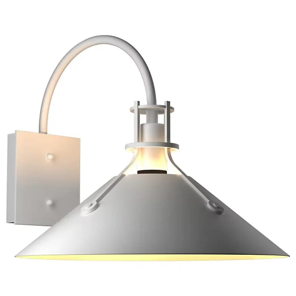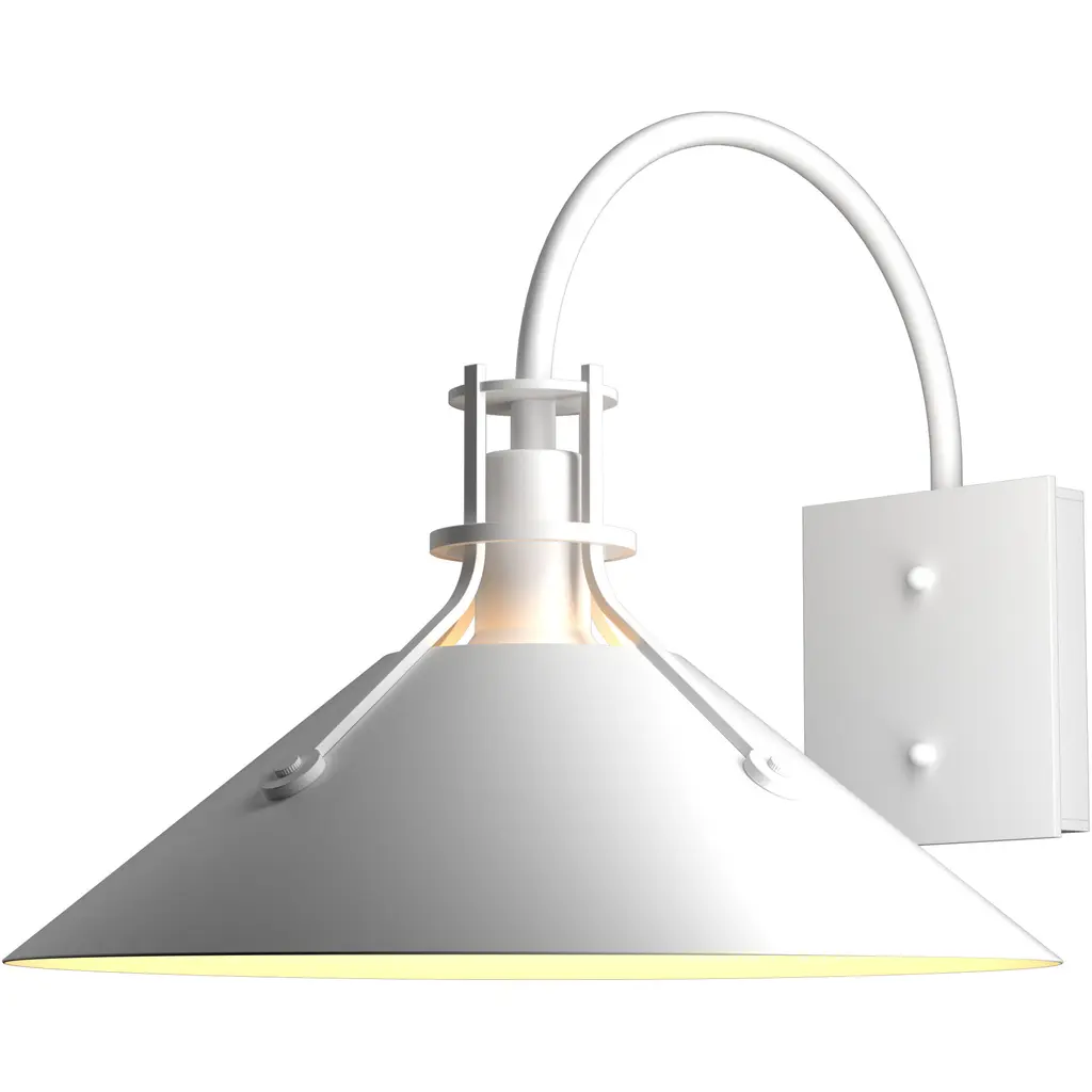 While designed for the most rugged conditions, the Rhoda Outdoor Gooseneck Wall Sconce from Alder & Ore presents itself gracefully with a gestural silhouette. It mounts securely to the wall with a large yet low-profile backplate. The piece leans forward in a familiar and always charming gooseneck arm. The extension and direction of the arm make the piece a great choice over a barn or garage door. Perched at the end, a dome shade keeps the bulb away from clear view for a relaxed lighting experience. Painted on the interior with a light-diffusing color, the spun heavy-duty aluminum shade sends out a wide beam of architecture-enhancing illumination.
