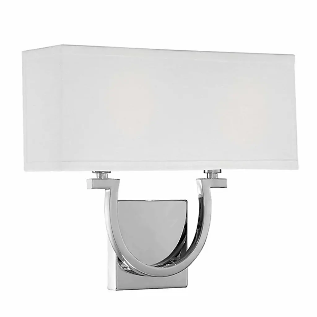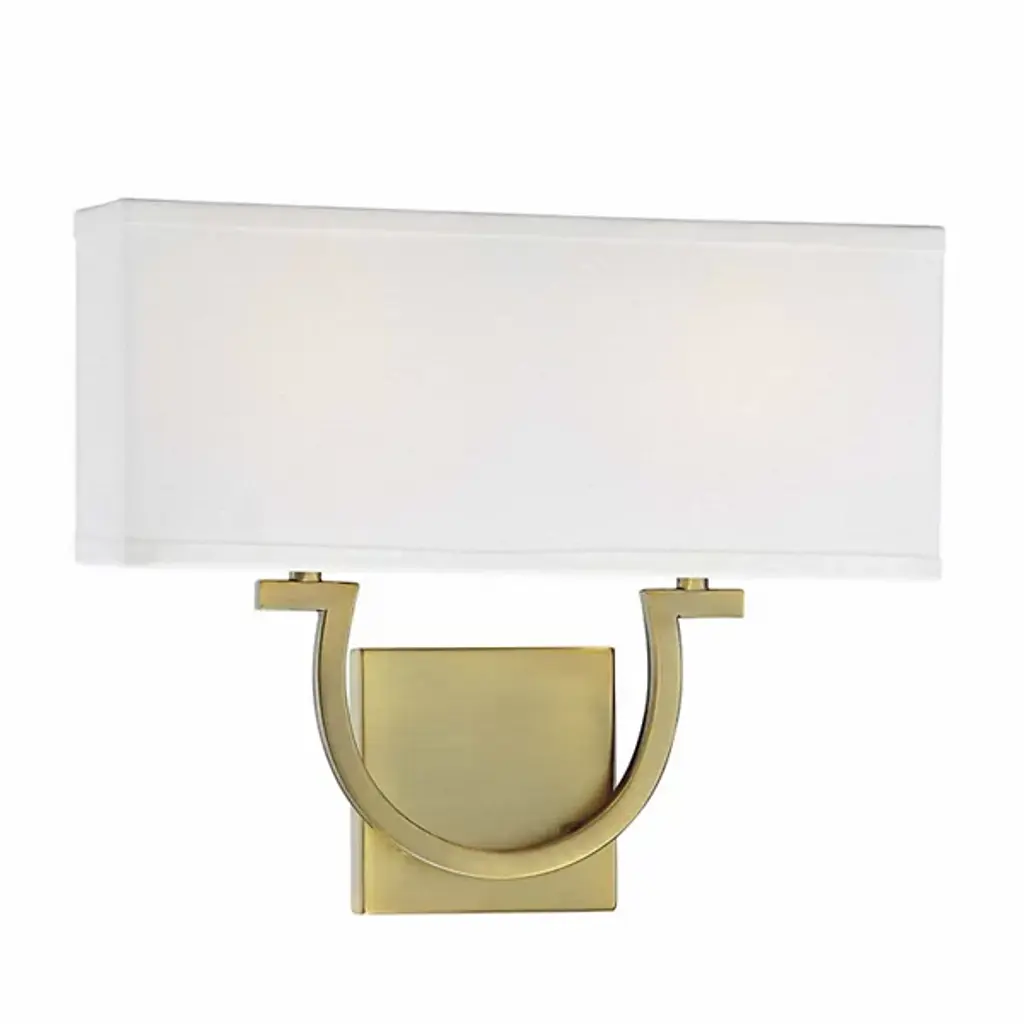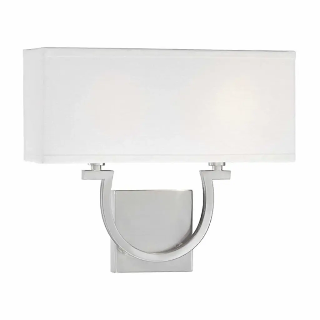 The Rhodes Wall Sconce by Savoy House is a slender, sophisticated addition to spaces. With a low-profile build, this handsome wall sconce offers plenty of illumination to a range of spaces as it filters an even layer of light through a crisp, rectangular linen shade. Anchored by a sleek, square backplate that supports an elongated, gracefully curved arm that mimics the shape of a horseshoe, this design is completed with a beautiful finish that lends it a tailored touch.