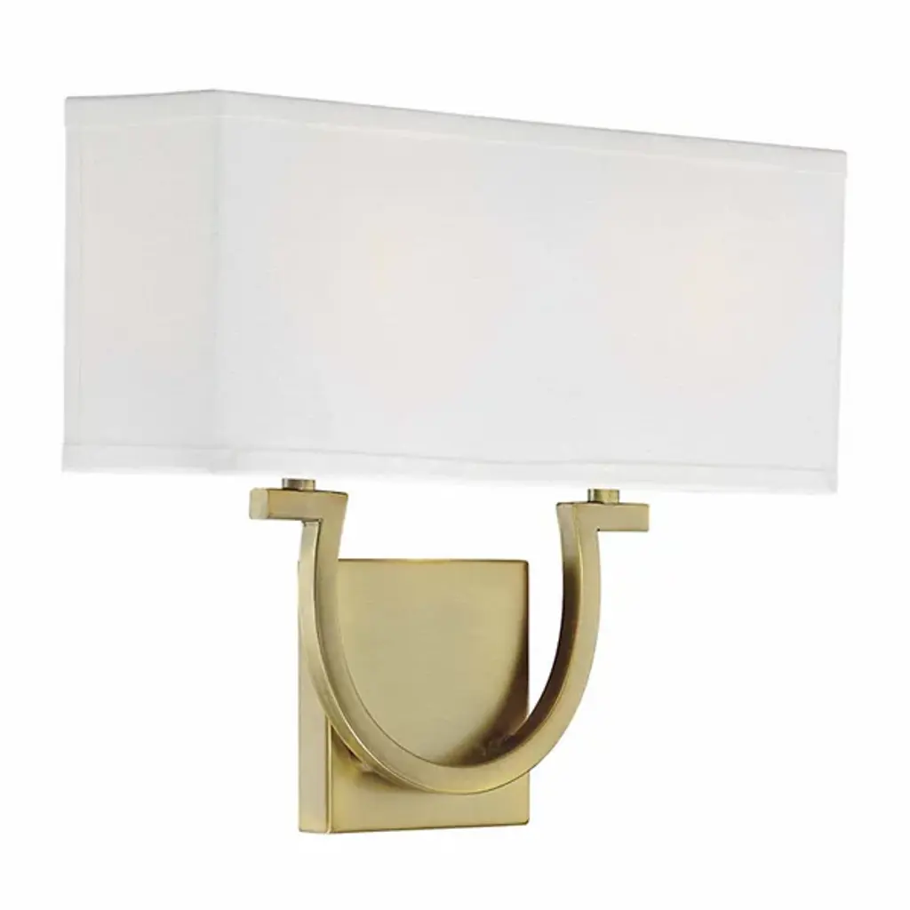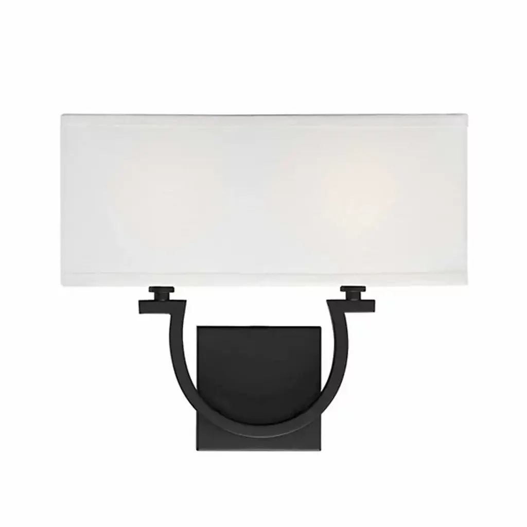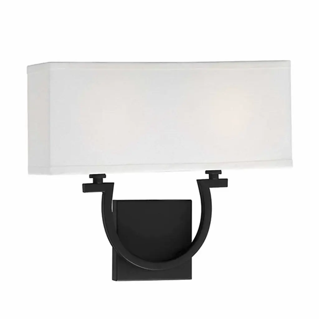 The Rhodes Wall Sconce by Savoy House is a slender, sophisticated addition to spaces. With a low-profile build, this handsome wall sconce offers plenty of illumination to a range of spaces as it filters an even layer of light through a crisp, rectangular linen shade. Anchored by a sleek, square backplate that supports an elongated, gracefully curved arm that mimics the shape of a horseshoe, this design is completed with a beautiful finish that lends it a tailored touch.