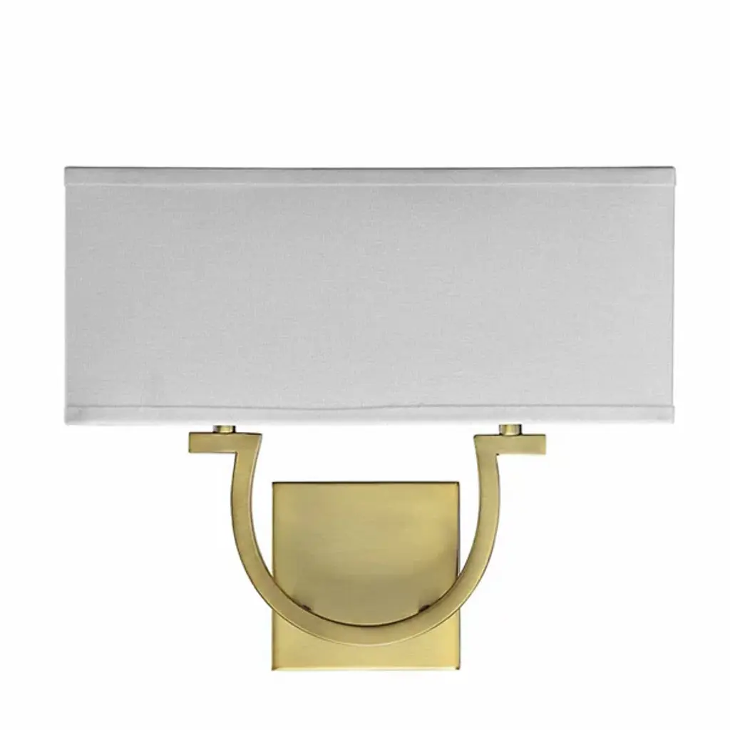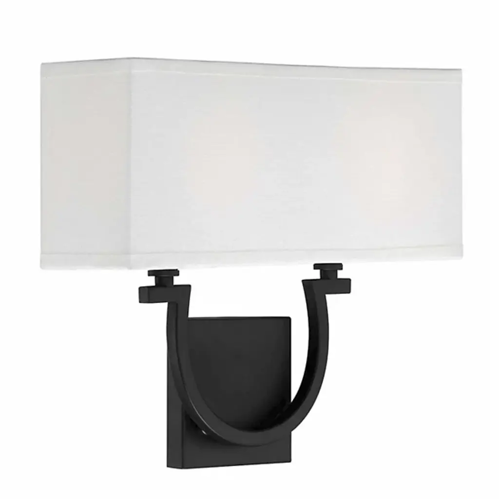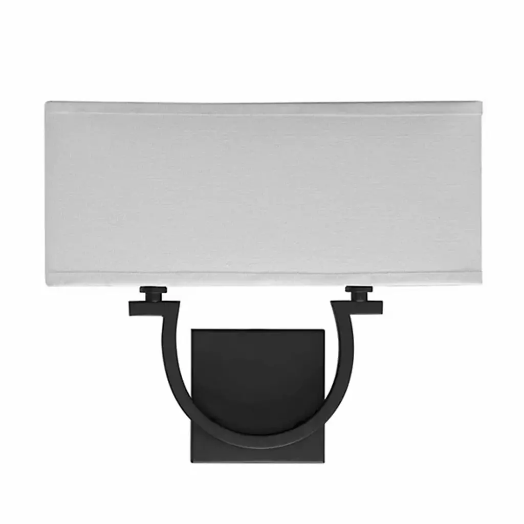 The Rhodes Wall Sconce by Savoy House is a slender, sophisticated addition to spaces. With a low-profile build, this handsome wall sconce offers plenty of illumination to a range of spaces as it filters an even layer of light through a crisp, rectangular linen shade. Anchored by a sleek, square backplate that supports an elongated, gracefully curved arm that mimics the shape of a horseshoe, this design is completed with a beautiful finish that lends it a tailored touch.