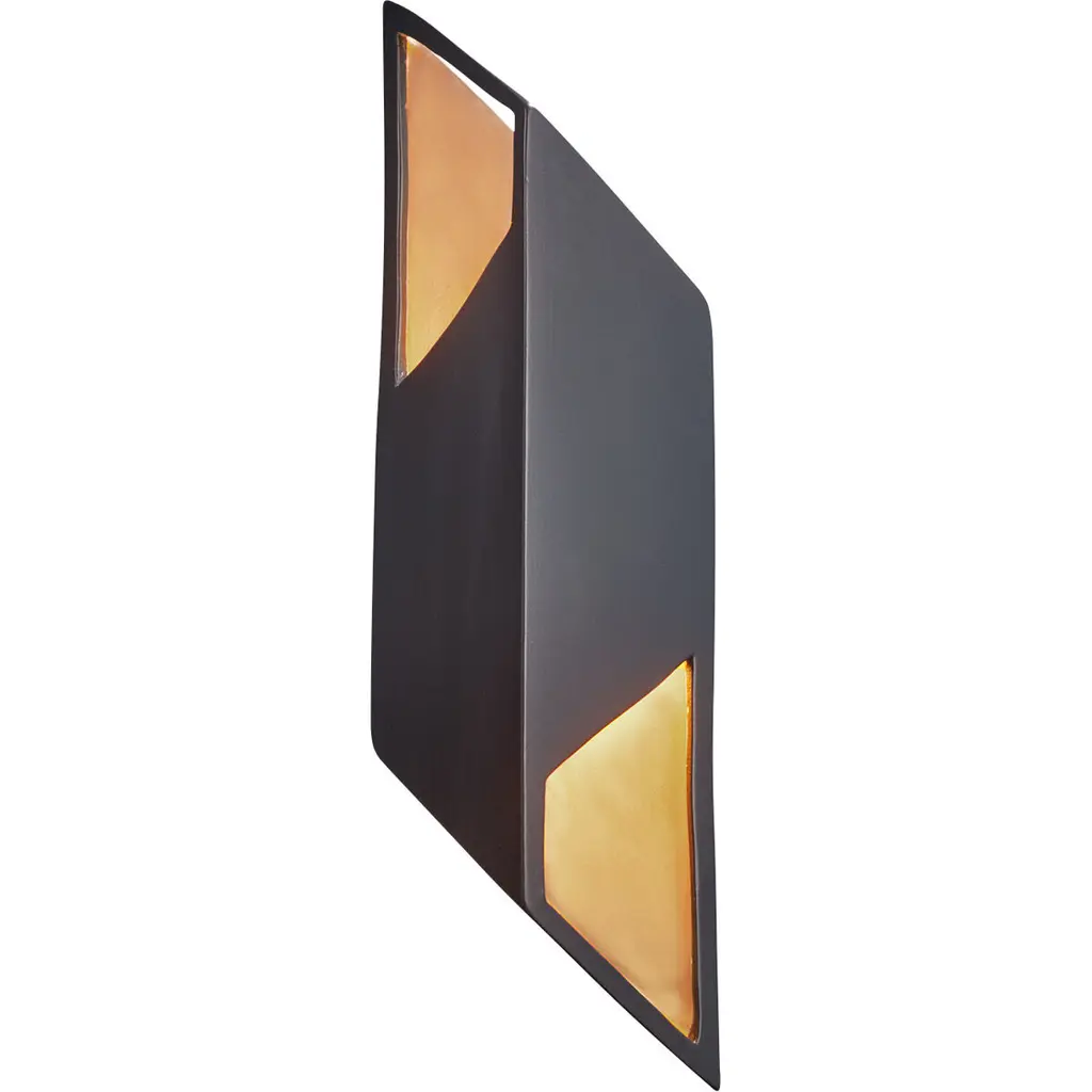 Rhomboid Right Led Wall Sconce, Large, Led, Carbon Matte Black/champagne Gold