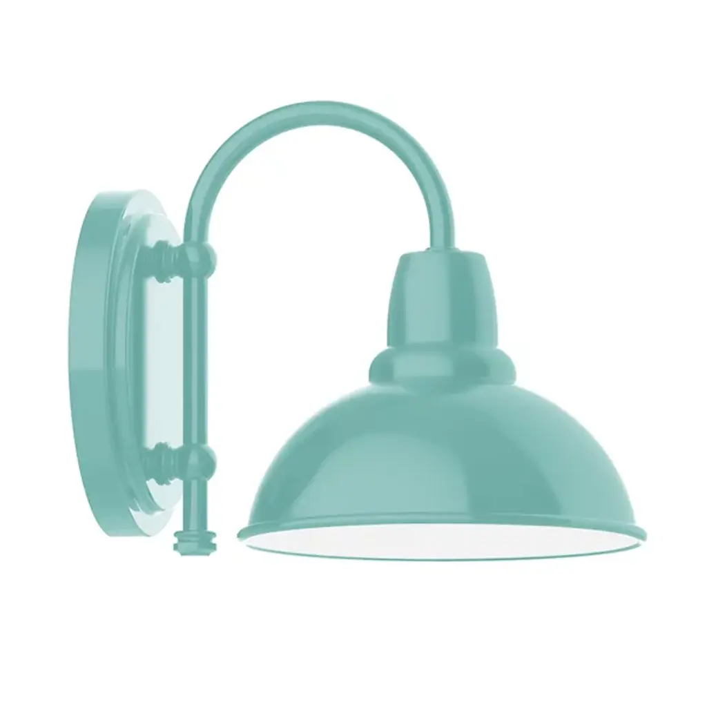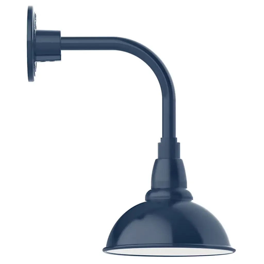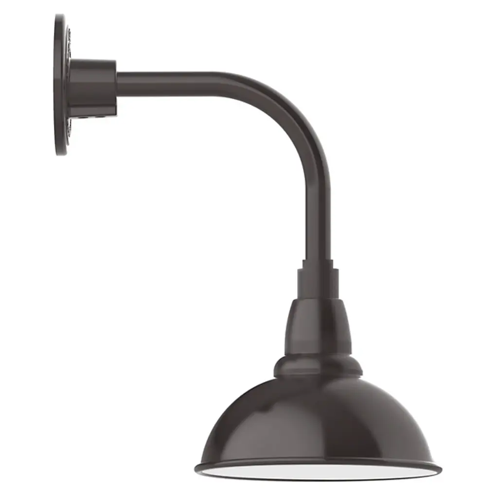 Showcase the bold lettering of your Café’s signage or simply make your outdoor areas bright and walkable with help from the Rhonda Outdoor Curved Arm Wall Sconce from Alder & Ore. The piece builds on the foundation of 1920’s industrial lighting. It shows its modern touch by seamlessly transitioning rounded shapes. Fitted to the wall with a compact backplate, the piece leans forward in a clean L-shaped arm. In a tower of widening forms, the heavy-duty aluminum shade slots at the end as a soft dome form. The shade is painted inside to enhance its light-diffusing properties. Sporting a single lamp, the piece generates a fan of smooth, clean downlighting.
