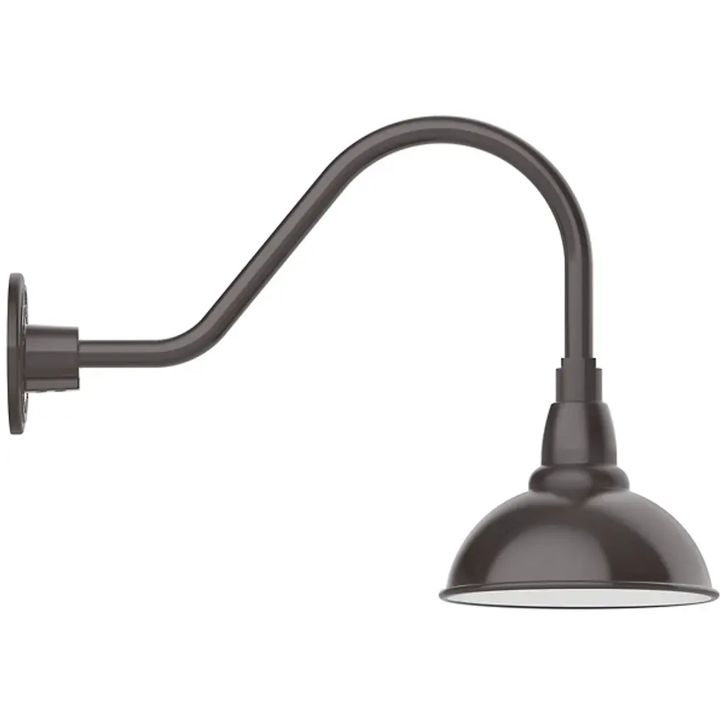 Make an inspired addition to your outside spaces with the Rhonda Rhonda Outdoor Gooseneck Wall Sconce from Alder & Ore. A retro design inspired by industrial fixtures from the 1920s, it starts with a round wall plate and single collar seating a swooping gooseneck stem that arcs over and down to a flared aluminum bowl shade below a conical housing. The Sconce’s durable matte exterior is artfully contrasted with the shade’s reflective interior, which surrounds wet-listed lamping to extend a wide wash of light through the fixture’s open base.
