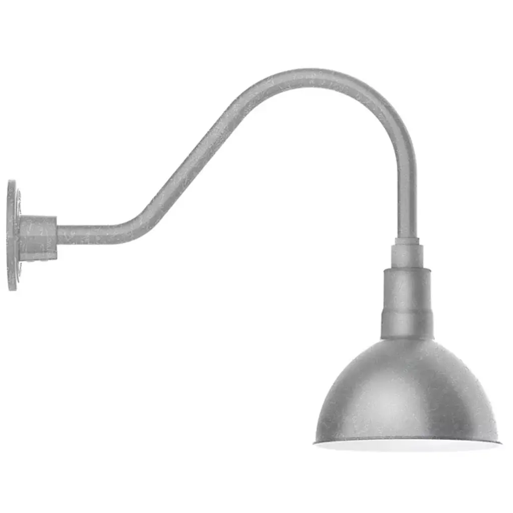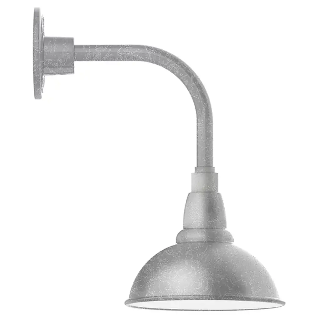 Make an inspired addition to your outside spaces with the Rhonda Rhonda Outdoor Gooseneck Wall Sconce from Alder & Ore. A retro design inspired by industrial fixtures from the 1920s, it starts with a round wall plate and single collar seating a swooping gooseneck stem that arcs over and down to a flared aluminum bowl shade below a conical housing. The Sconce’s durable matte exterior is artfully contrasted with the shade’s reflective interior, which surrounds wet-listed lamping to extend a wide wash of light through the fixture’s open base.