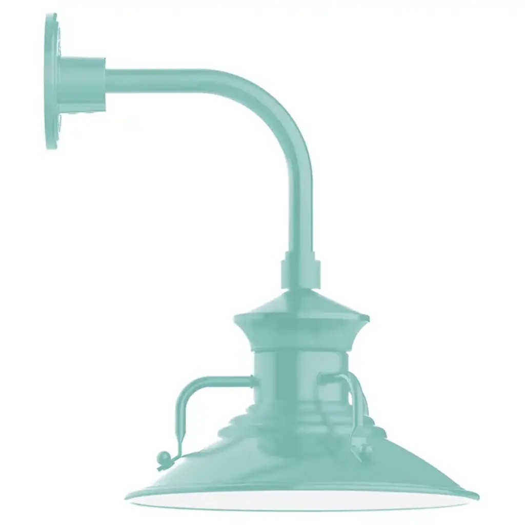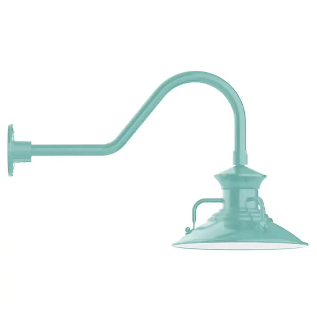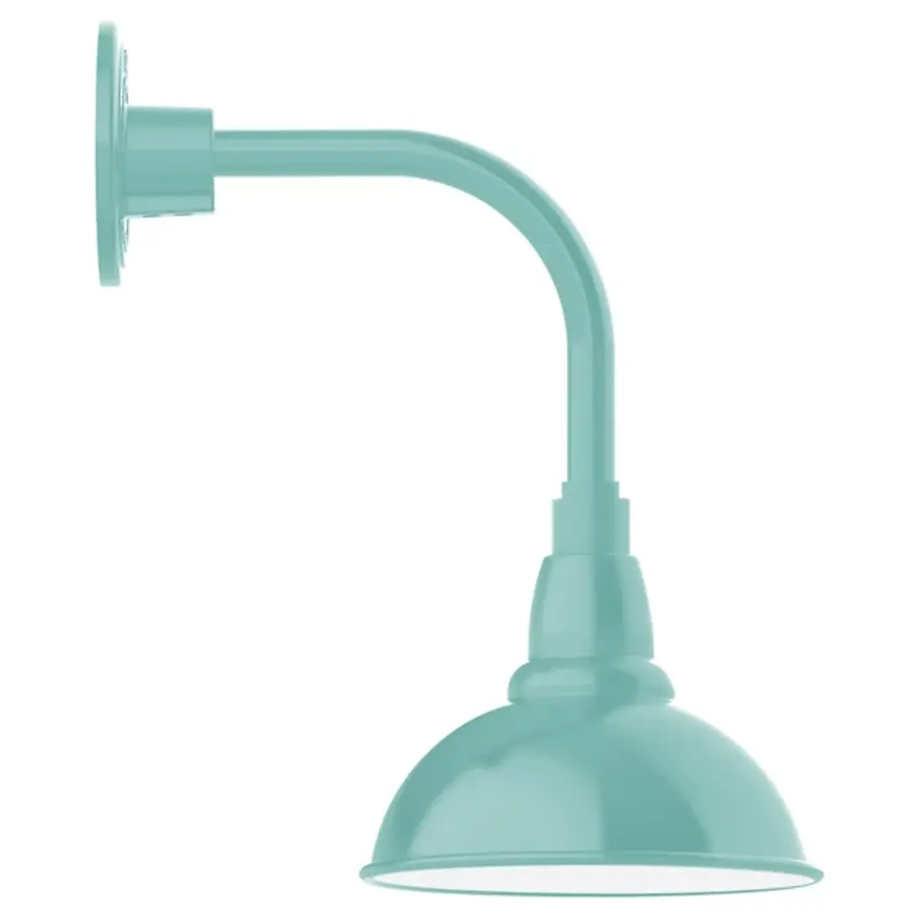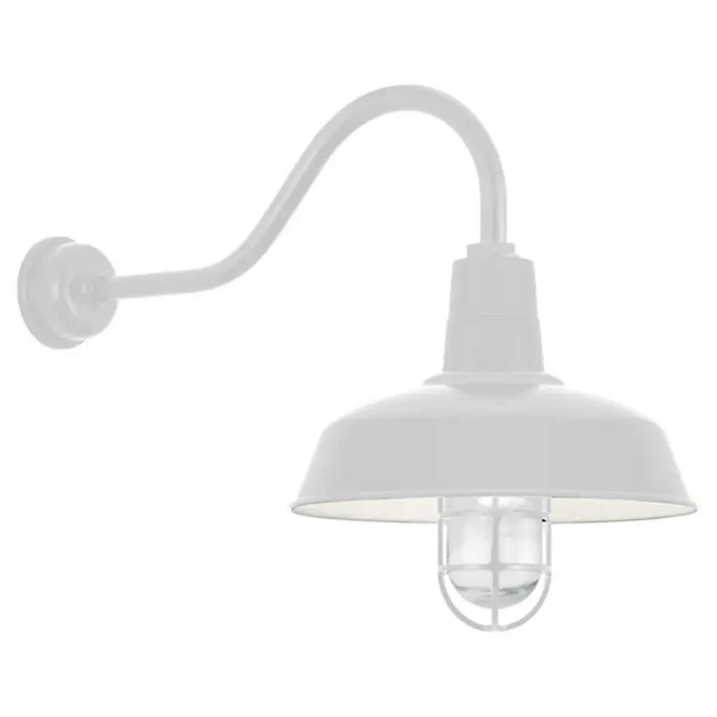 Make an inspired addition to your outside spaces with the Rhonda Rhonda Outdoor Gooseneck Wall Sconce from Alder & Ore. A retro design inspired by industrial fixtures from the 1920s, it starts with a round wall plate and single collar seating a swooping gooseneck stem that arcs over and down to a flared aluminum bowl shade below a conical housing. The Sconce’s durable matte exterior is artfully contrasted with the shade’s reflective interior, which surrounds wet-listed lamping to extend a wide wash of light through the fixture’s open base.