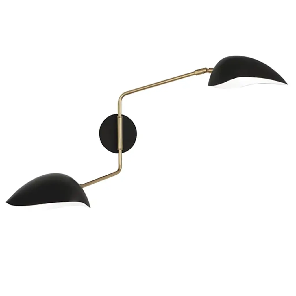 Getting the eyes darting from one side to the other like an elegant supercar. The Rico Espinet Racer Wall Sconce from Robert Abbey offers a pleasant glow that's more of your speed. It holds out a pair of smooth lamp shades that can be rotated up or down. These shades put the brakes on glare while sending out a fanned-out light that's great for ambiance or tasks. The connecting arms draw a sculptural silhouette one can appreciate at any time of day. The compact shape of the circular backplate lets the piece rest in tight spaces.